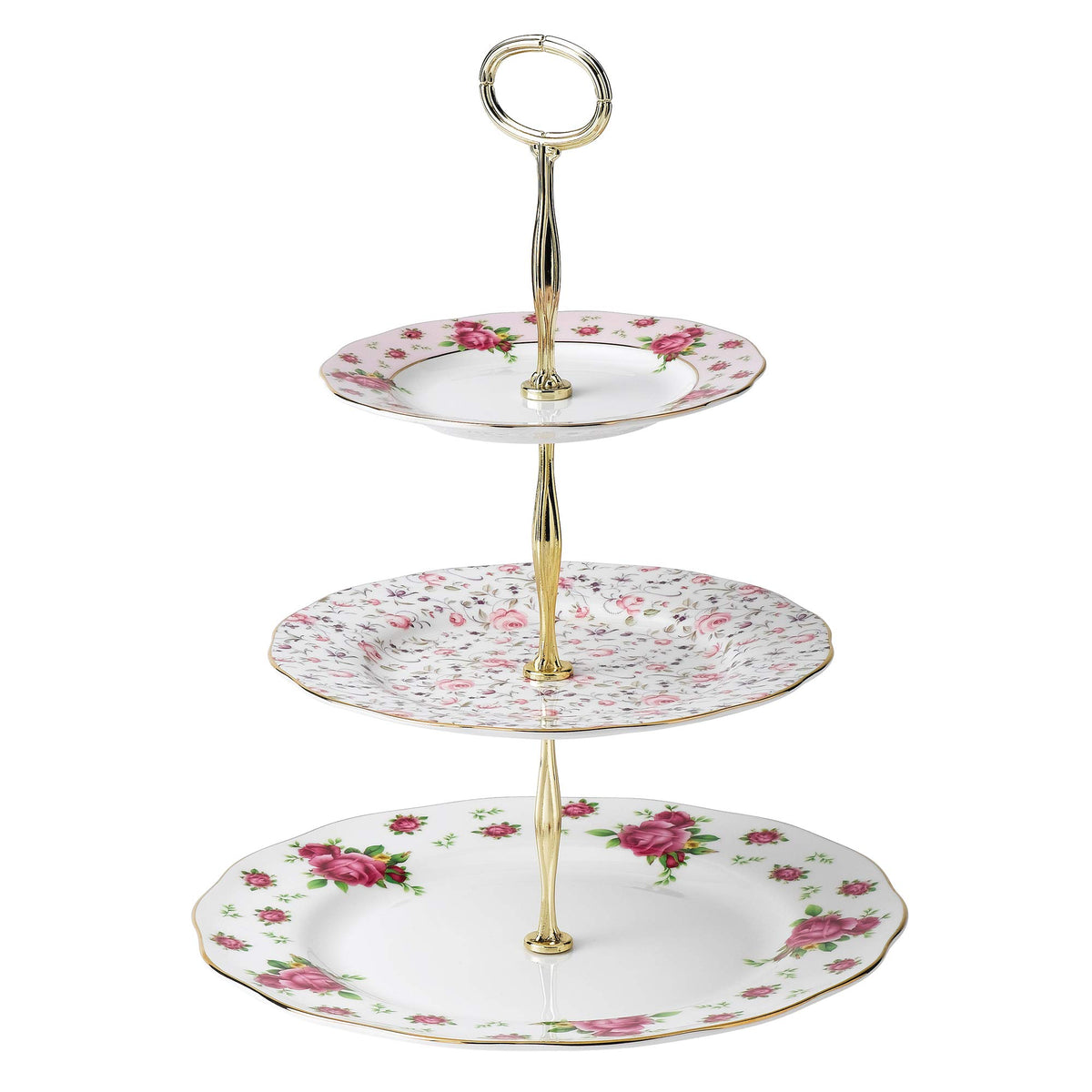 Royal Albert New Country Roses White Cake Stand Three-Tier, 11.5''