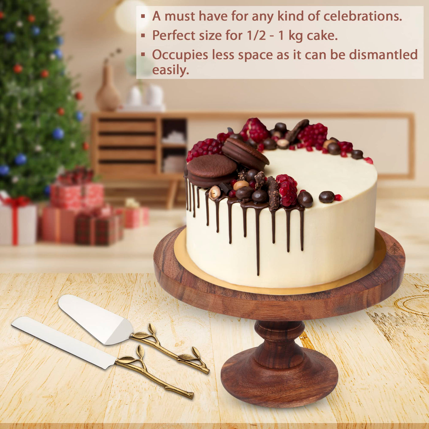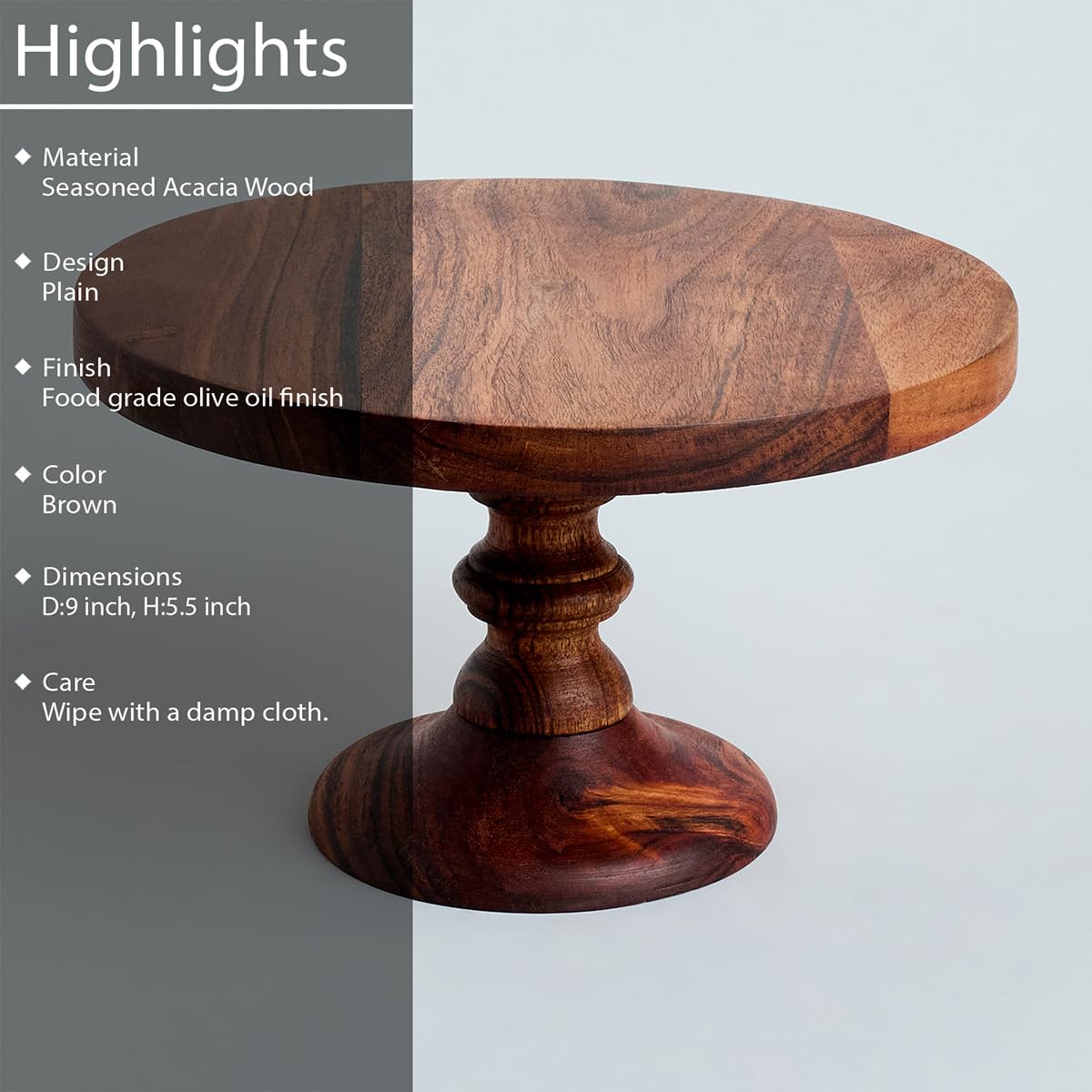 Saaga Round Birch Wooden Cake Stand - 9X5.5 Inch - Pizza Stand, Dessert Platter, Stand For Dining Table - Brown