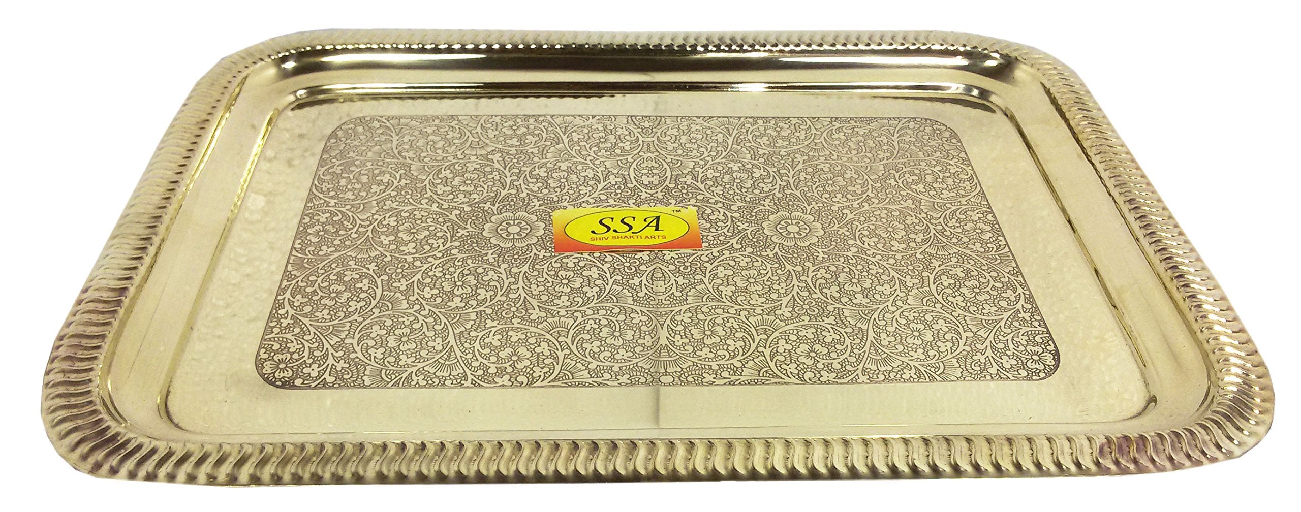 SHIV SHAKTI ARTS Handamde Brass Embossed Tray Homeware Dinnerware Diwali Gifting Purpose, Diwali Gifting Item