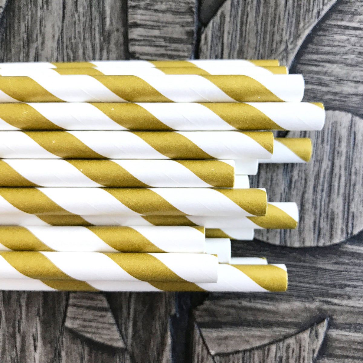 • Q: What color are the striped paper straws? A: The straws feature a stylish gold and white striped design.