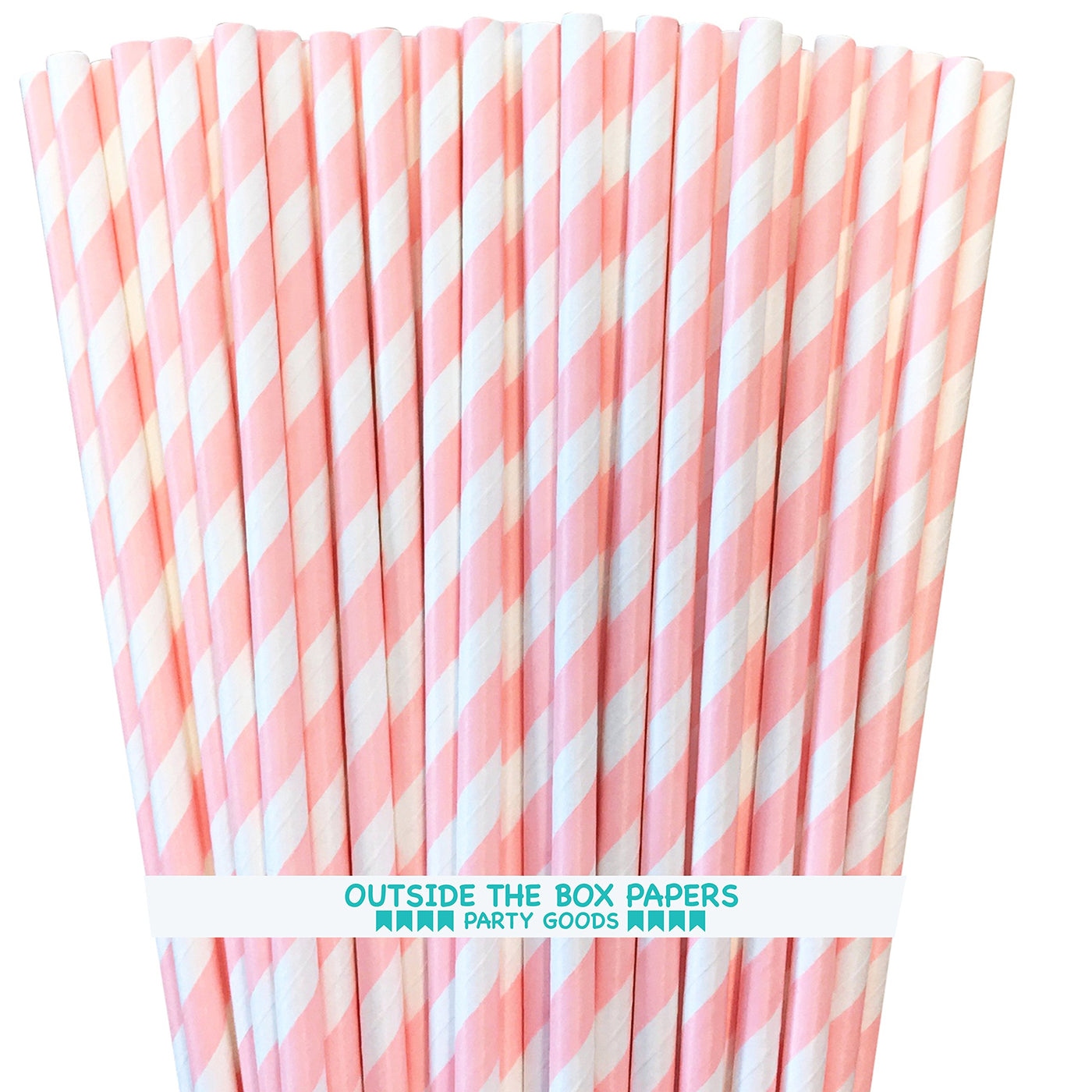 Striped Paper Straws - Light Blush Pink White - Valentine Wedding Baby Shower Birthday Supply - 7.75 Inches - Pack Of 100- Outsi