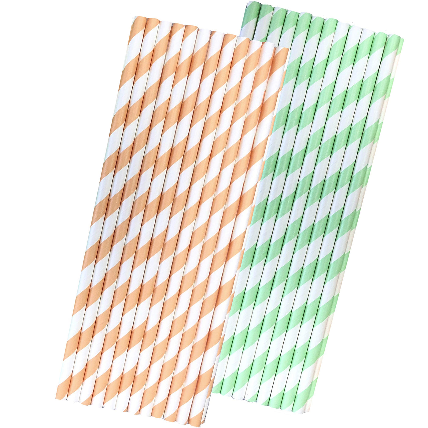 Striped Paper Straws - Mint Green Peach White - 7.75 Inches - Pack Of 50 Outside The Box Papers Brand