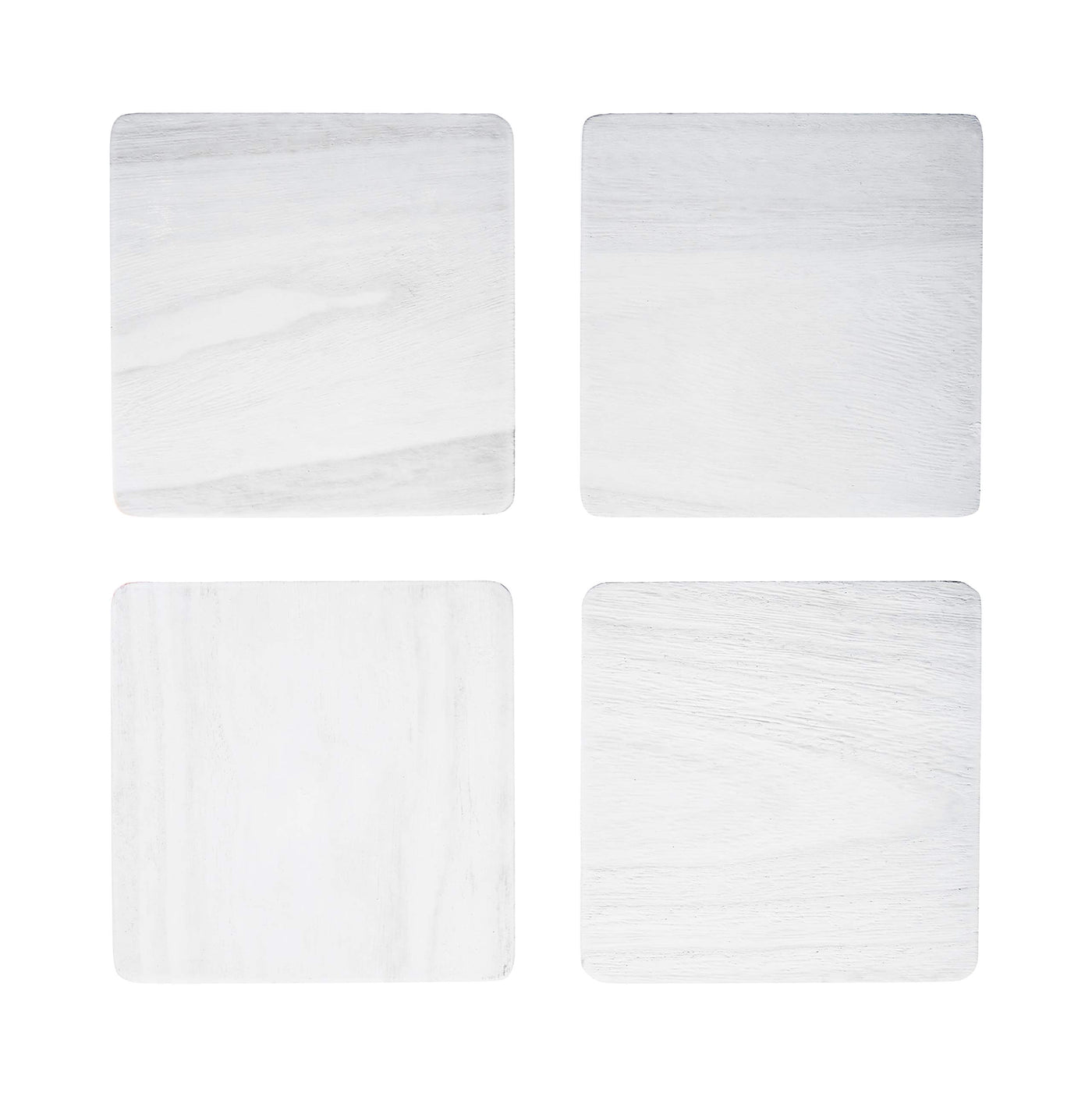 • Q: What materials are the Twine Whitewash Coasters made of? A: The Twine Whitewash Coasters are made of wood with a white wash coating.
