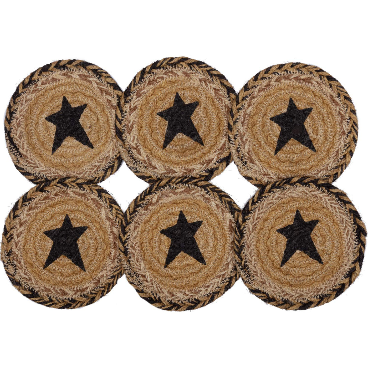 Vhc Brands Kettle Grove Primitive Jute Tan Textured Round Kitchen Coaster Stencil Star Set Of 6 4''