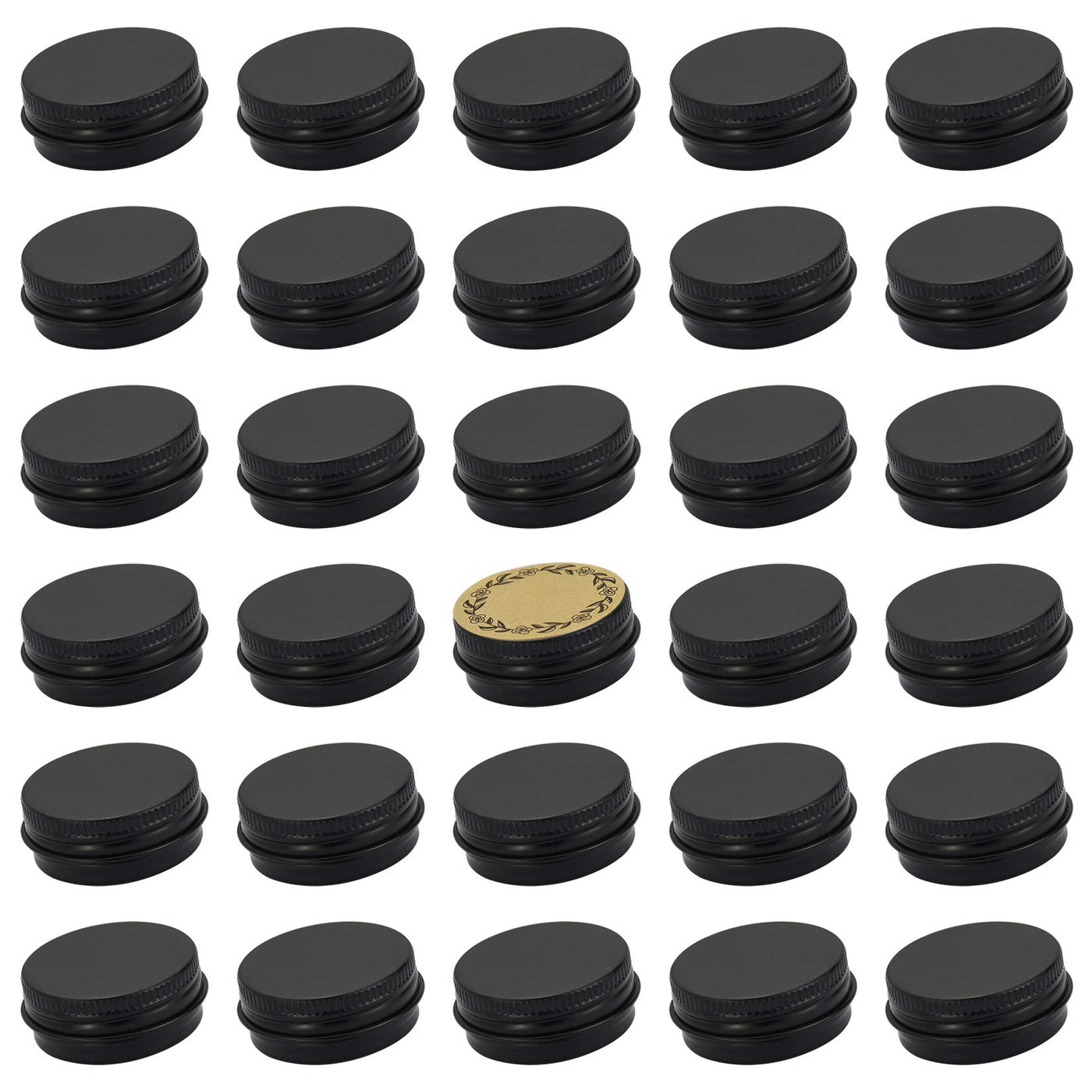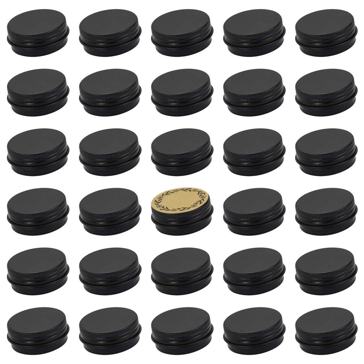 0.5 Oz Screw Top Aluminum Tin Jar With Screw Lid And Blank Labels (Black - Pack Of 32)