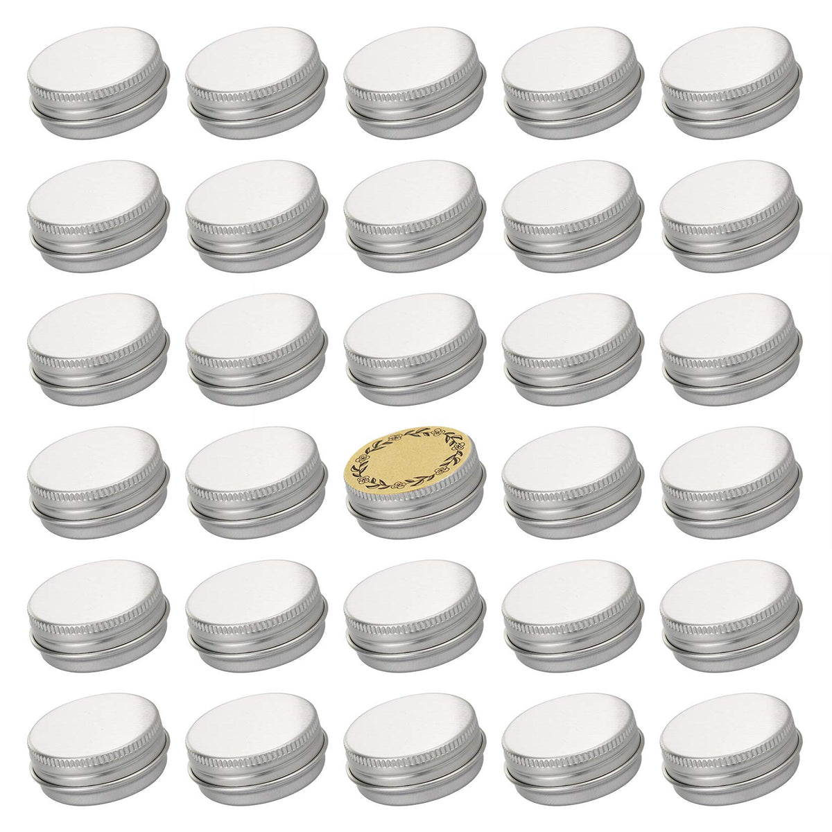 0.5 oz Screw Top Aluminum Tin Jar with Screw Lid and Blank Labels (Silver - Pack of 32)