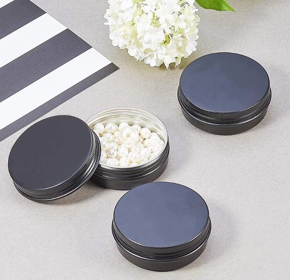 1/2-Ounce Metal Tins Screw Top Flat Aluminum Black Slide Round Tin Containers For Lip Balm Crafts Cosmetic Candles Travel Storag