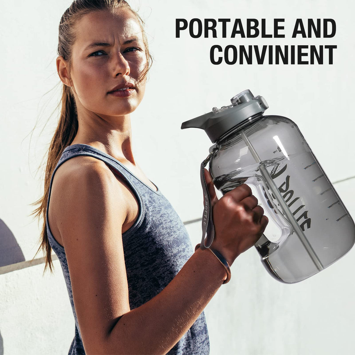 1 Gallon Water Bottle with Straw & Chug lid (optional) BPA Free Dishwasher Safe 128oz Large Water Bottle with Motivational Time Marker and Handle Leak-proof Big Water Jug for Camping Sports Workouts (128oz Black)