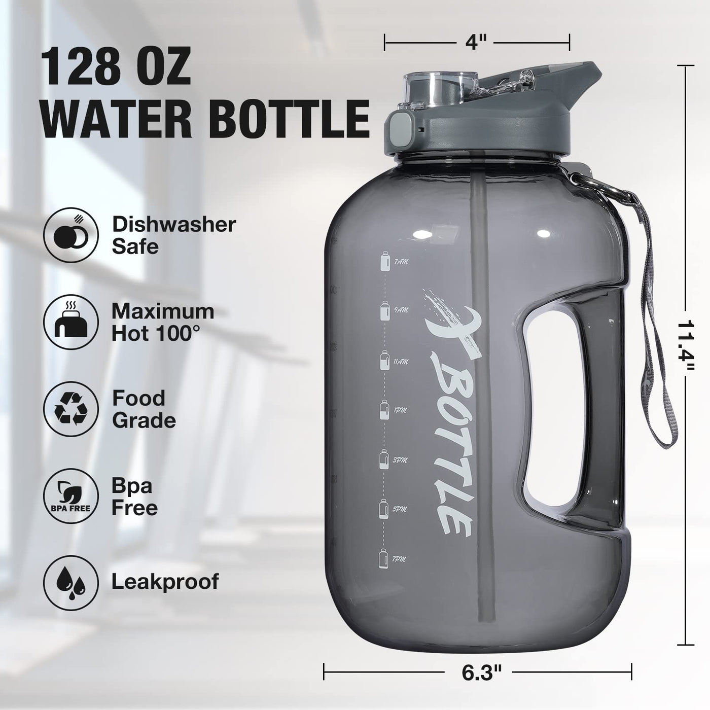 - Q: What is the capacity of the XBOTTLE water bottle? A: The XBOTTLE holds 1 gallon, which is equivalent to 128 ounces, making it ideal for all-day hydration.