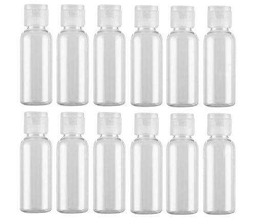 12PCS 30ml/1oz Empty Clear Plastic Sample Bottle Travel Container Jar Pot Vial with Flip Lid Perfect for Makeup Emollient Water Shower Gel Emulsion Liquid Comestic Containers (30ml/1oz)