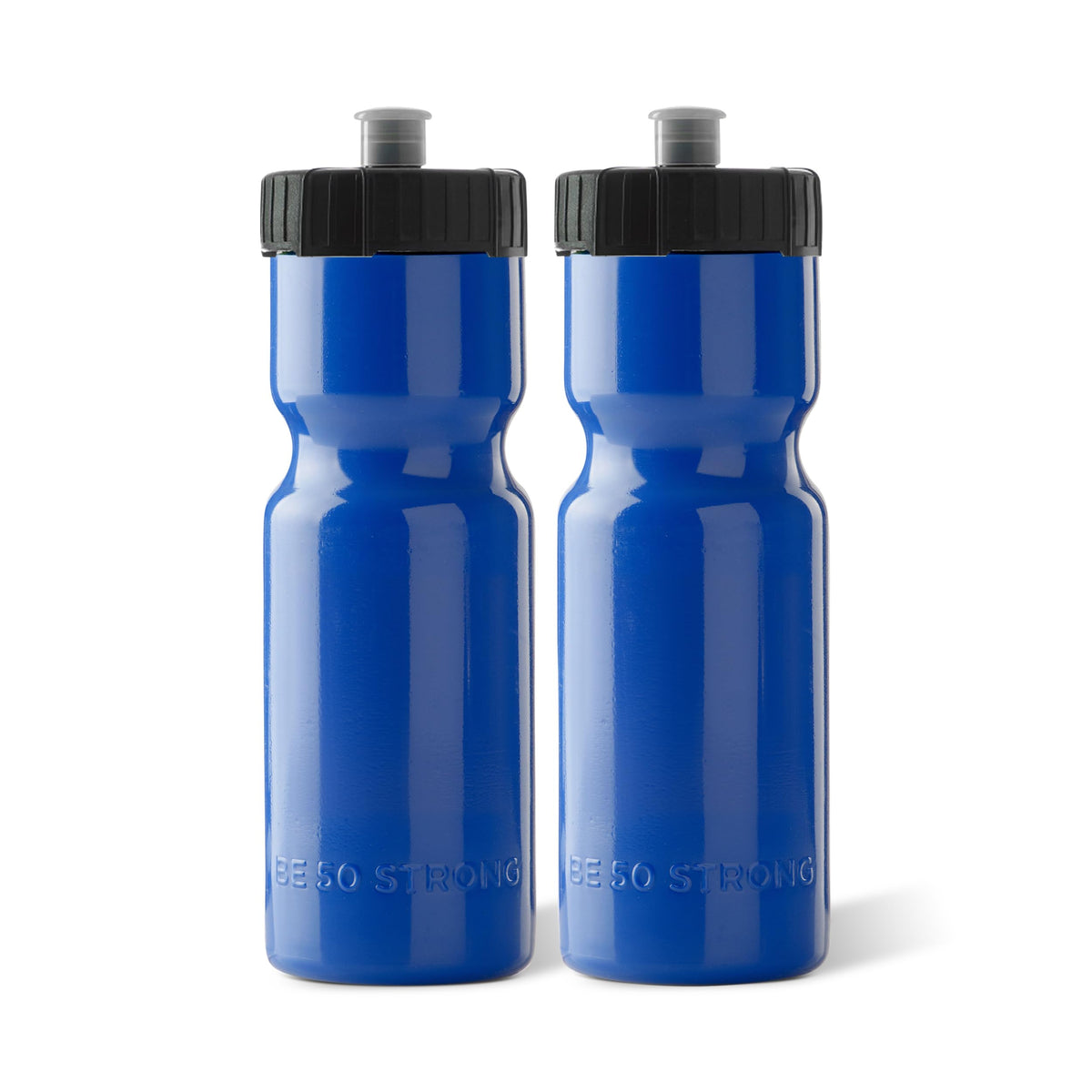 50 Strong Sports Squeeze Water Bottle 2 Pack - 22 oz. BPA Free Easy Open Push/Pull Cap - USA Made (Blue/Black)
