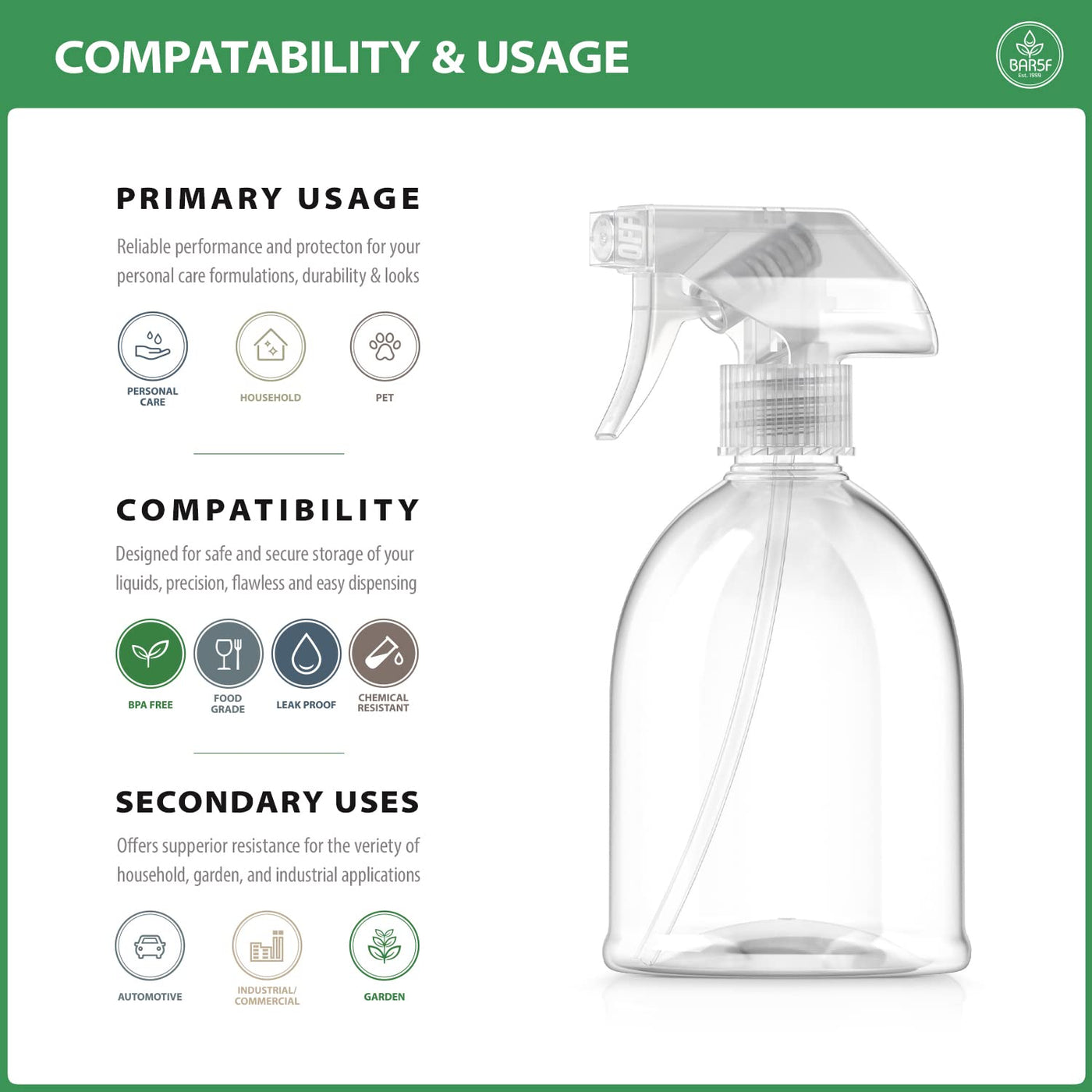 Bar5F Fine Mist Spray Bottle 16-Ounce Essential Oils, Gardening, Mild Cleaning Solutions, Pets, Plants, Cooking, Water Spray Bot