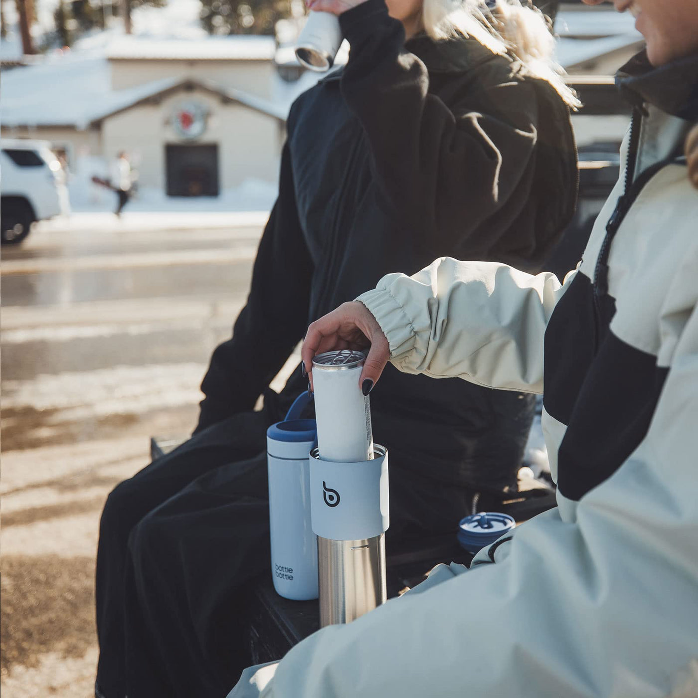 - Q: Can this bottle fit slim 12 oz cans? A: Yes, the bottle is compatible with all slim 12 oz cans of beer, energy drinks, and soda, keeping them cold for 8-12 hours.