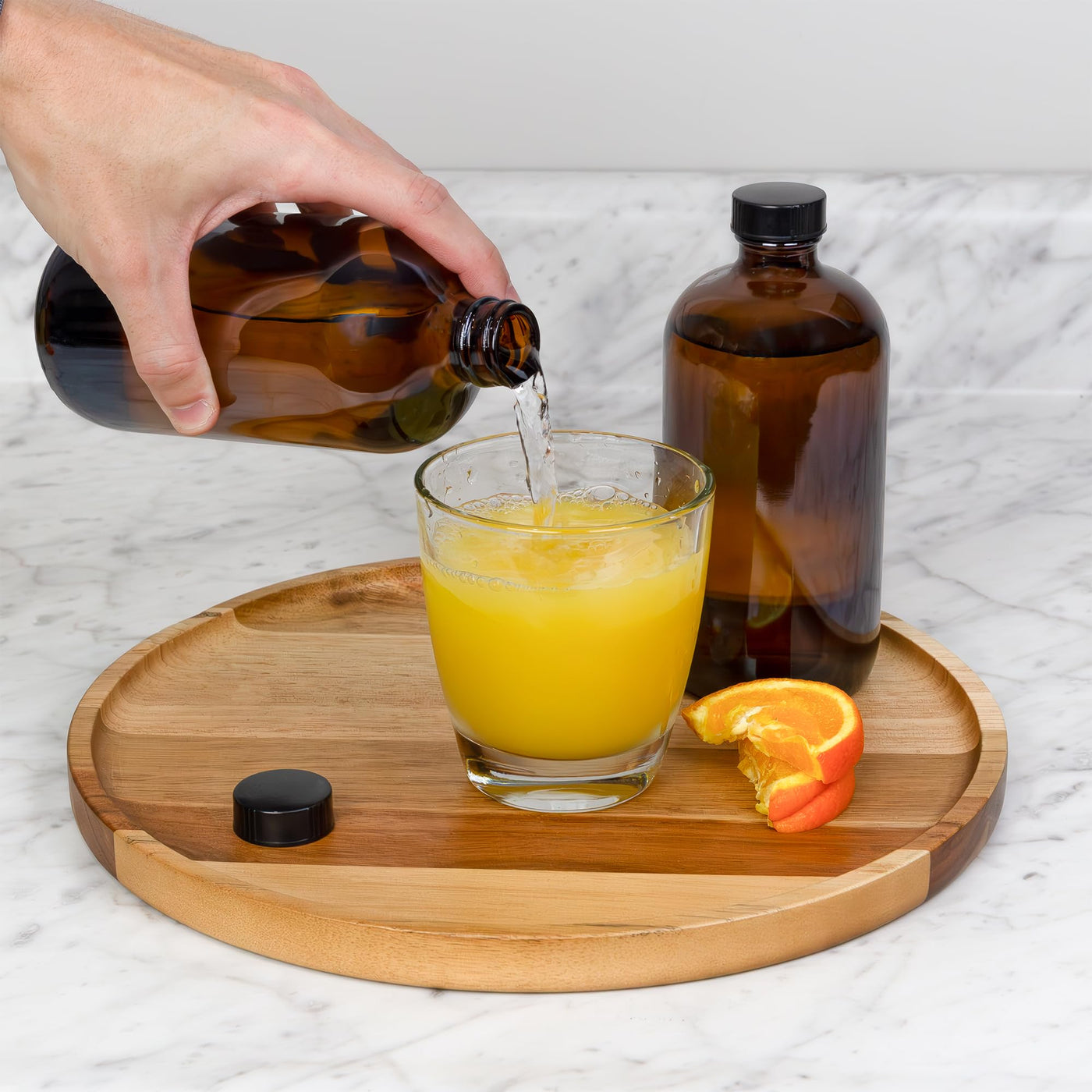 Cornucopia 16oz Amber Glass Bottles with Reusable Chalk Labels and Lids (2 Pack) Refillable Brown Boston Round Bottles with Black 28-400 Caps
