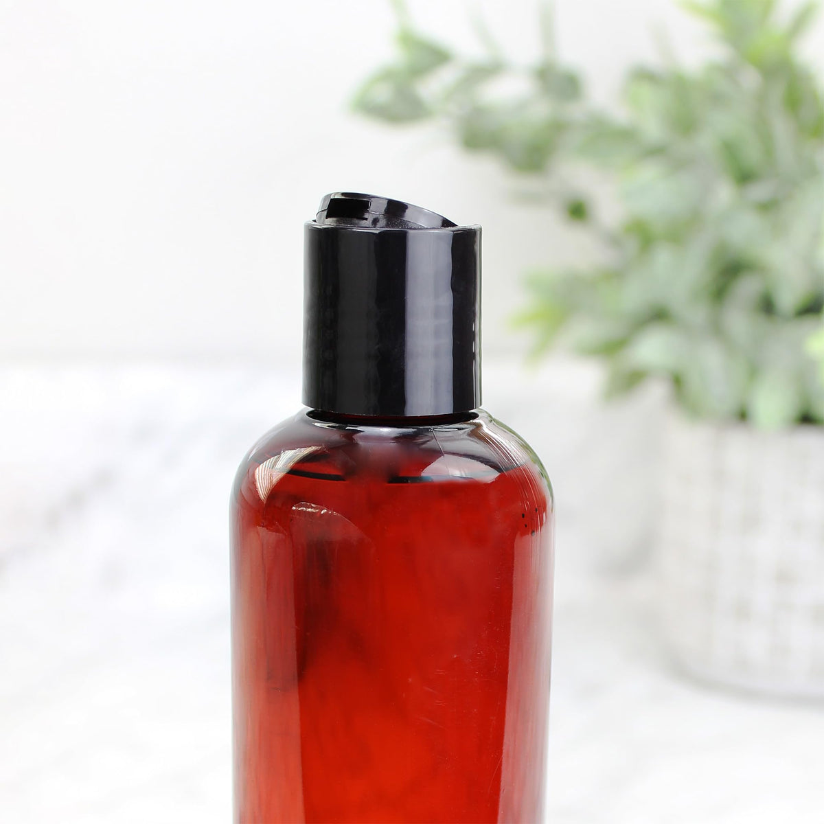 - Q: Do the bottles come with caps? A: Yes, each bottle comes with a black smooth disc top cap lid.