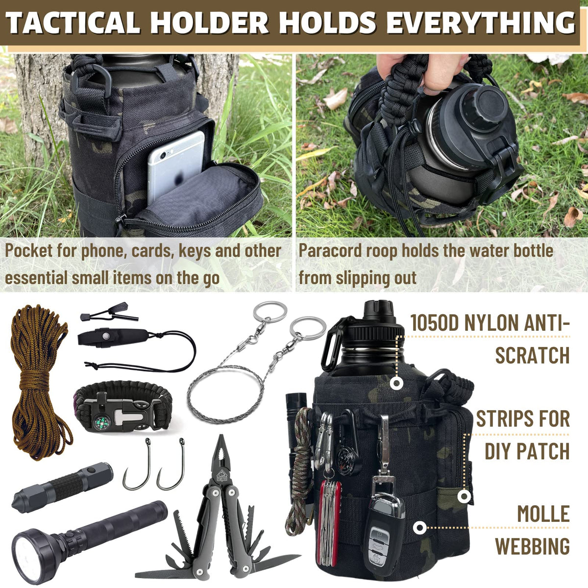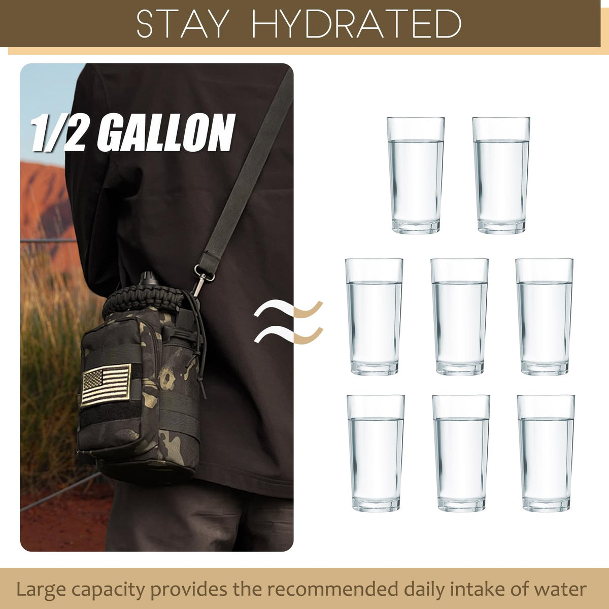 Defunx 64 Oz Water Bottle Insulated With Sleeve (Camo Black) - Half Gallon Water Jug With Handle - Stainless Steel Sports Water