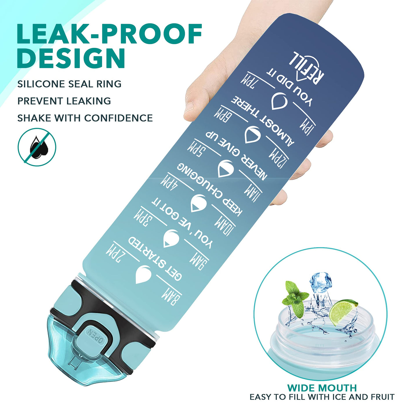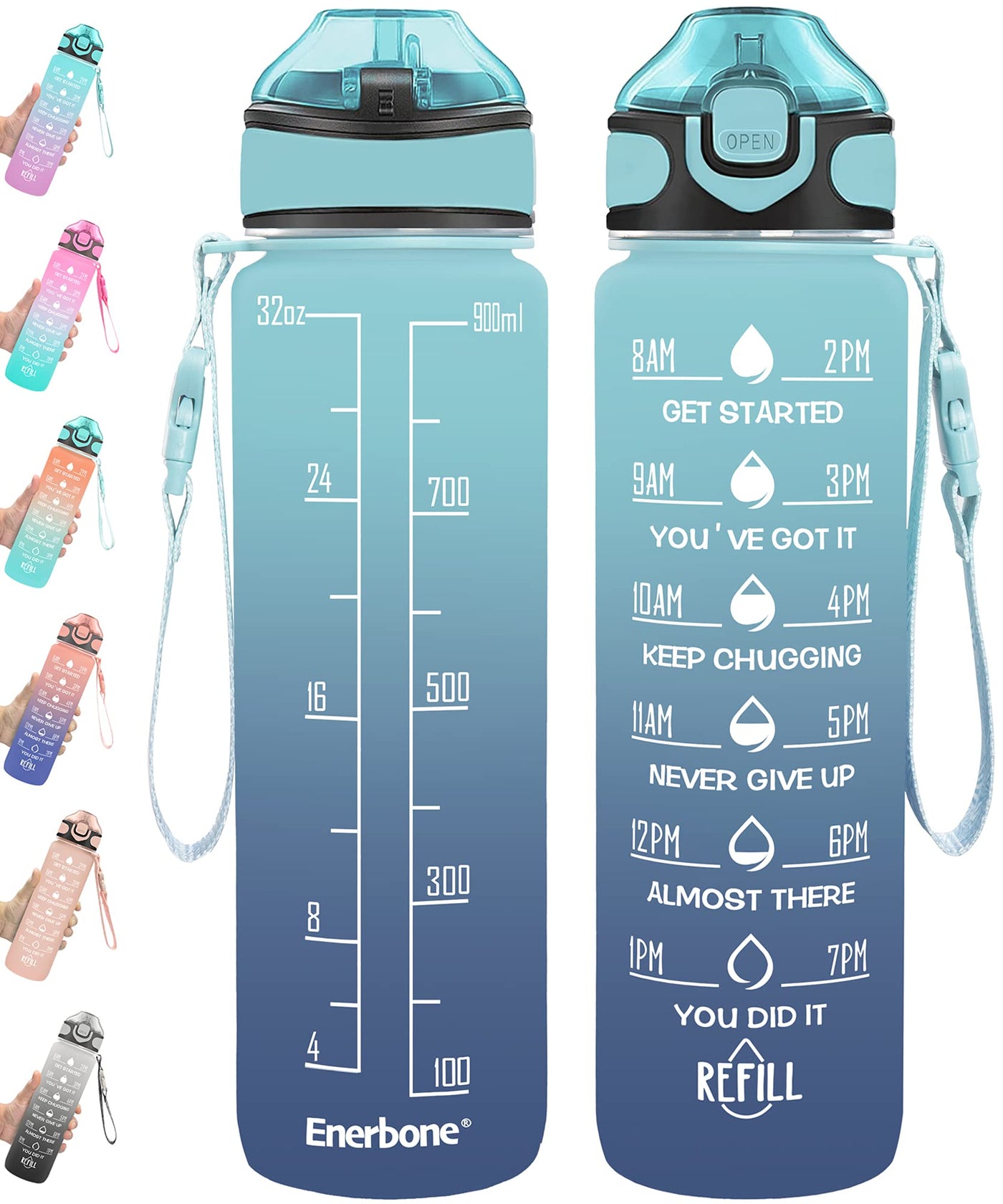 Enerbone 32 oz Water Bottle with Times to Drink and Straw Motivational Drinking Water Bottles with Carrying Strap Leakproof BPA & Toxic Free Ensure You Drink Enough Water for Fitness Gym Outdoor