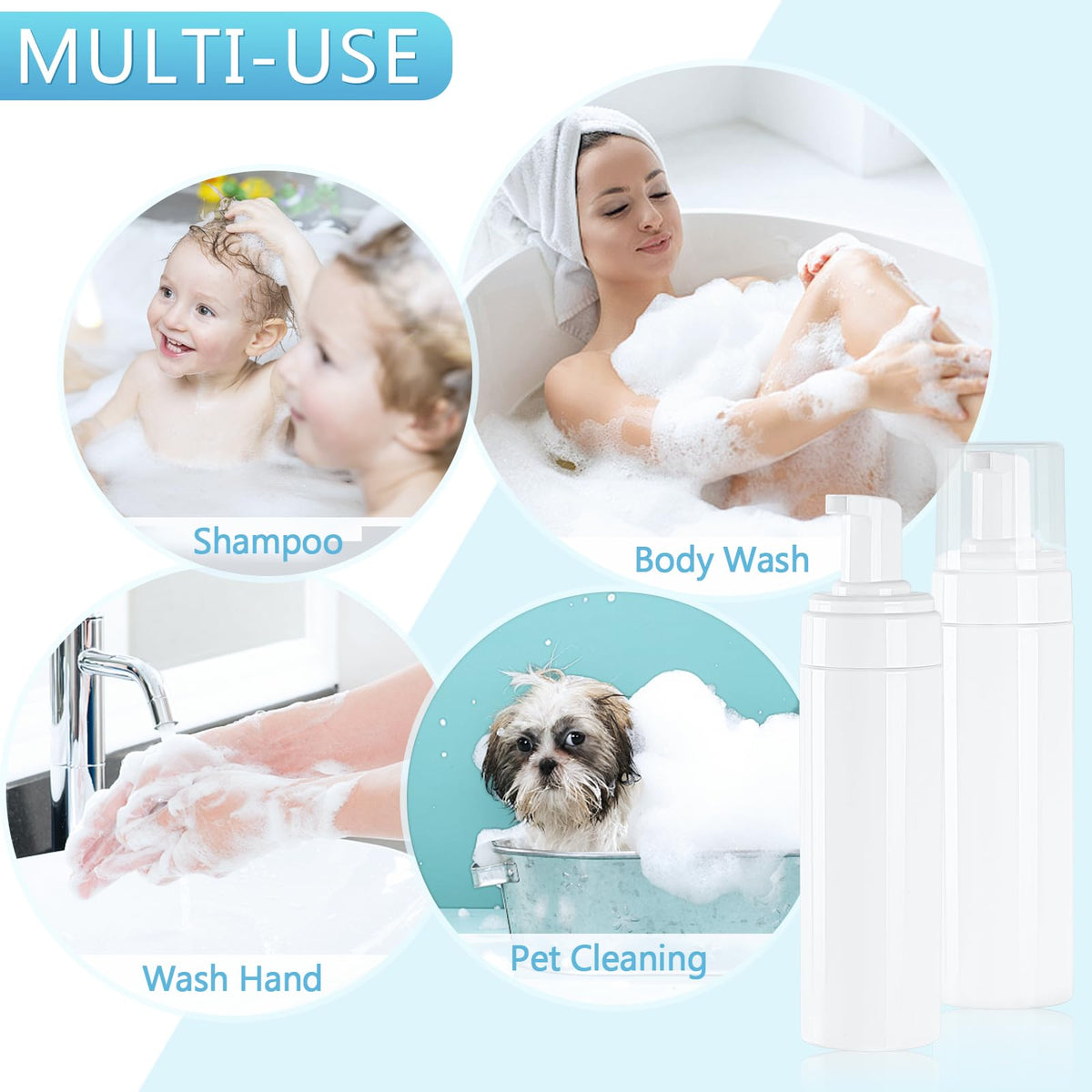 - Q: How many bottles are included in the set? A: The set includes four foam pump bottles.