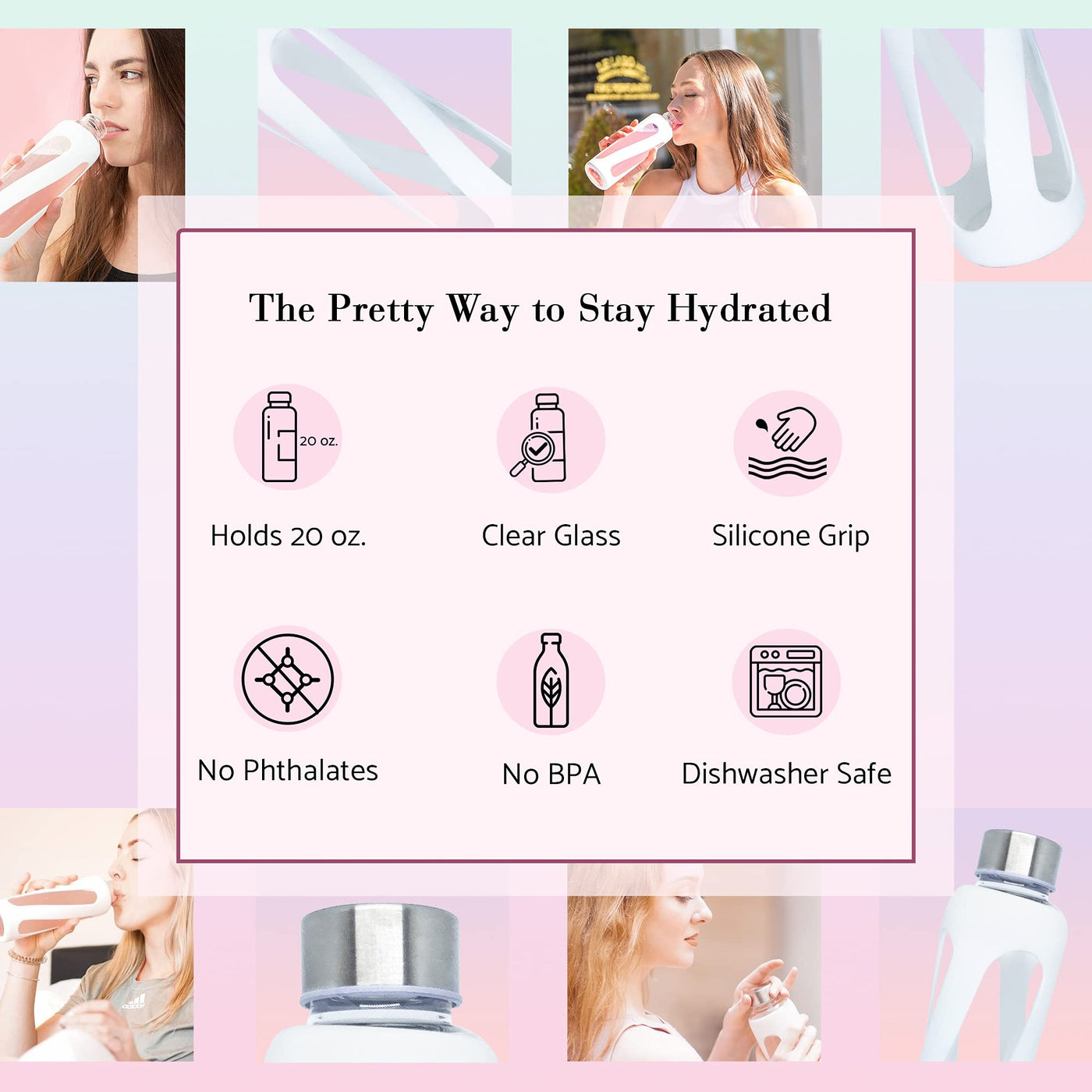 - Q: Does the water bottle contain BPA or phthalates? A: No, the Glotrition Georgie Clear Glass Water Bottle is free from BPA and phthalates, making it a safe choice for hydration.