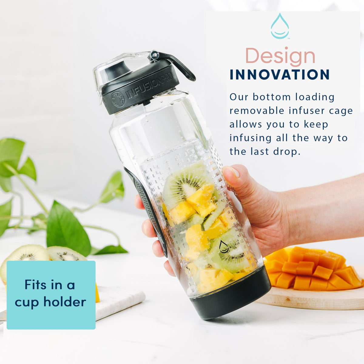 - Q: What is the capacity of the Infusion Pro Fruit Infuser Water Bottle? A: The Infusion Pro Fruit Infuser Water Bottle has a large capacity of 32 ounces, allowing for maximum hydration throughout the day.