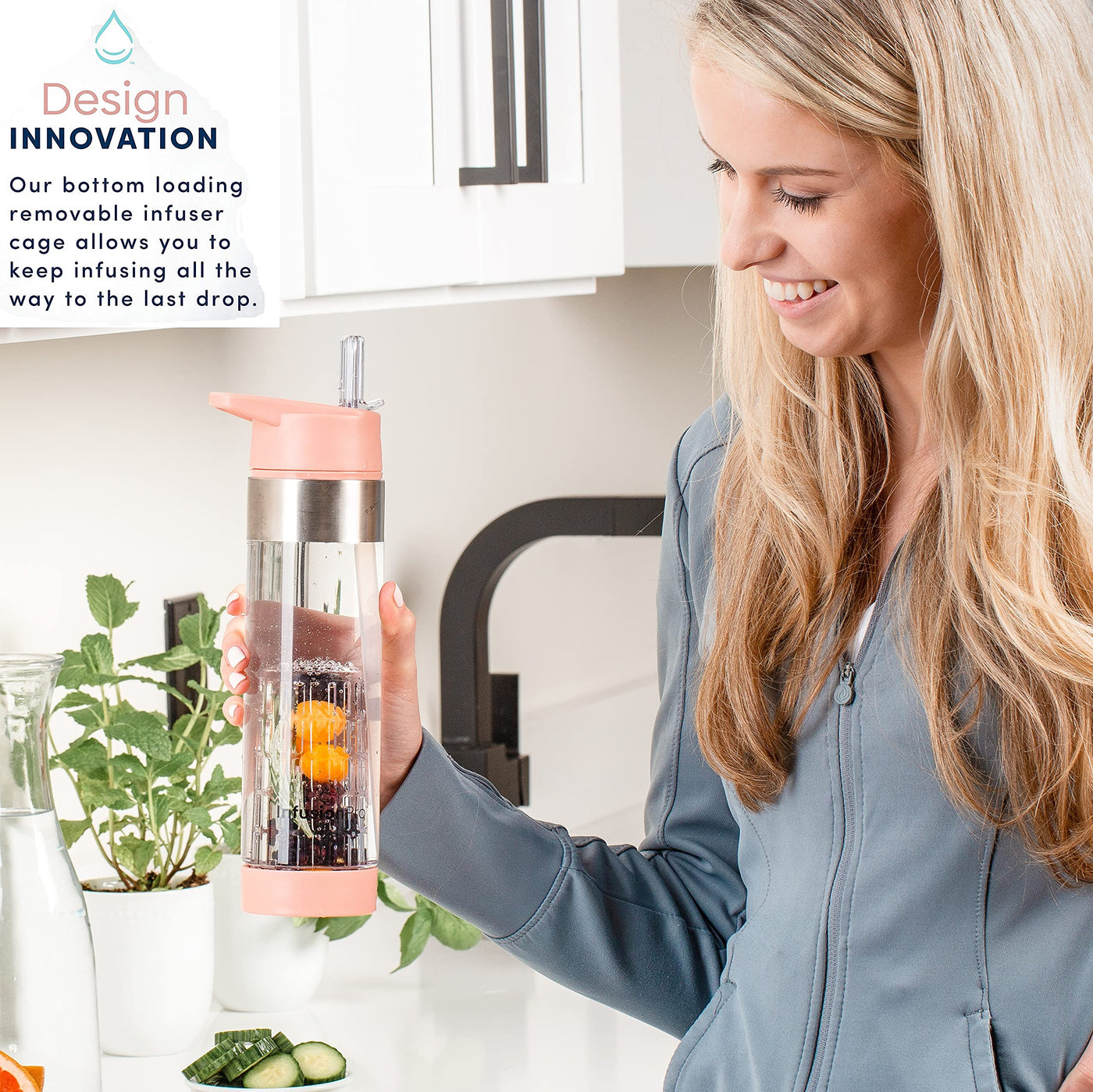 - Q: How does the bottom loading infuser work? A: The bottom loading infuser allows you to add whole fruits and herbs directly into the bottle, enhancing the flavor of your water for a bold taste.