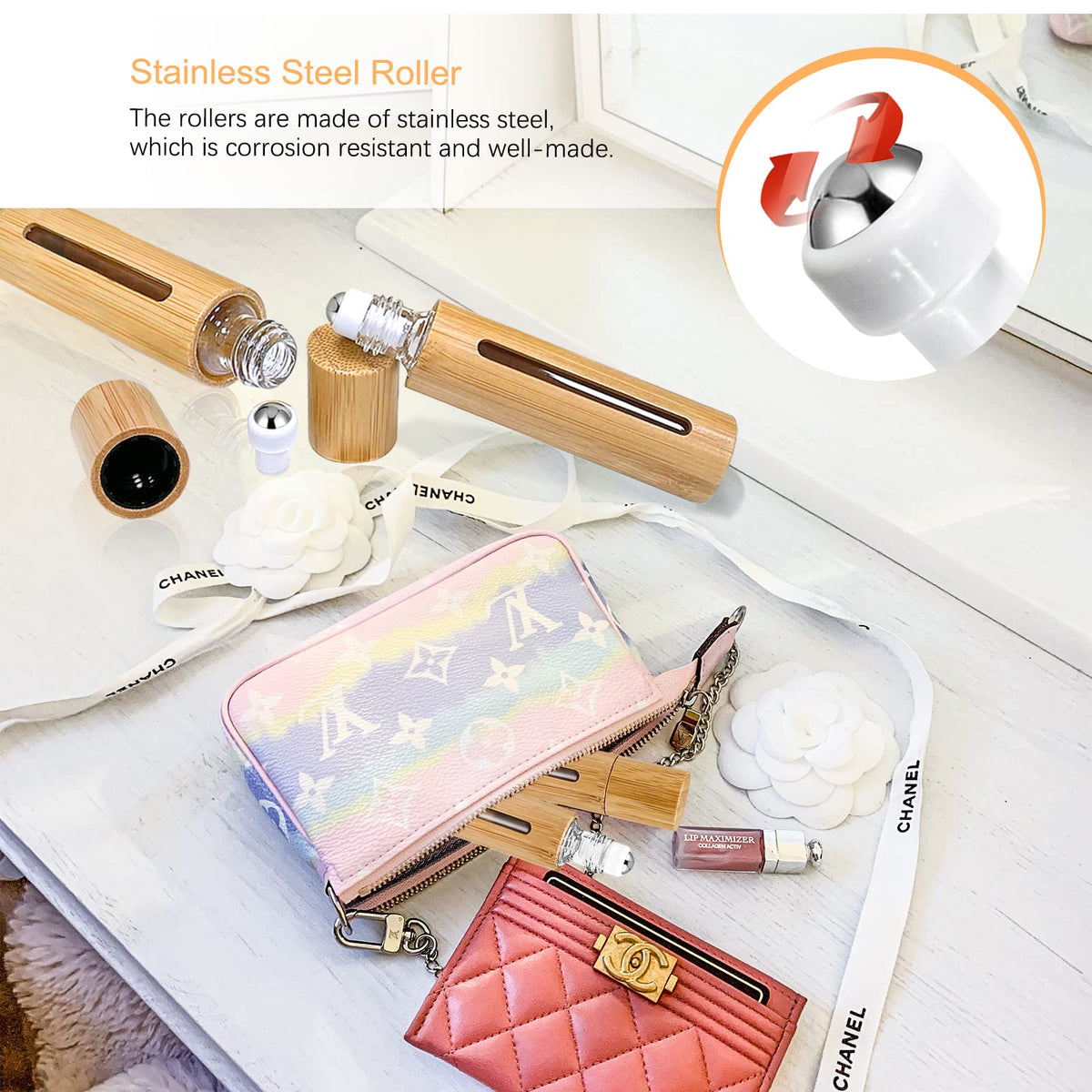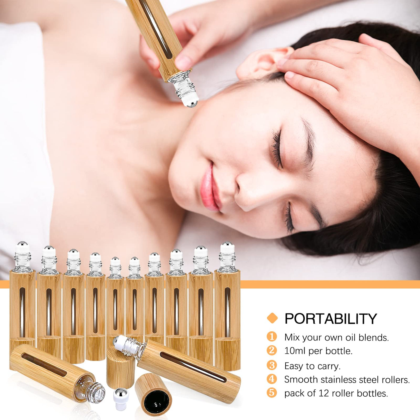 Kalyloc 12Pcs 10Ml Bamboo Roll On Bottles For Essential Oils, Refillable Perfume Sample Bottles With Stainless Steel Roller, Ess