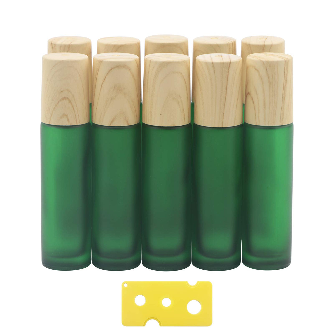 • Q: How many roller bottles are included in this package? A: The package includes a total of 10 roller bottles, along with 10 stainless steel roller ball tops and 10 wood grain lids.