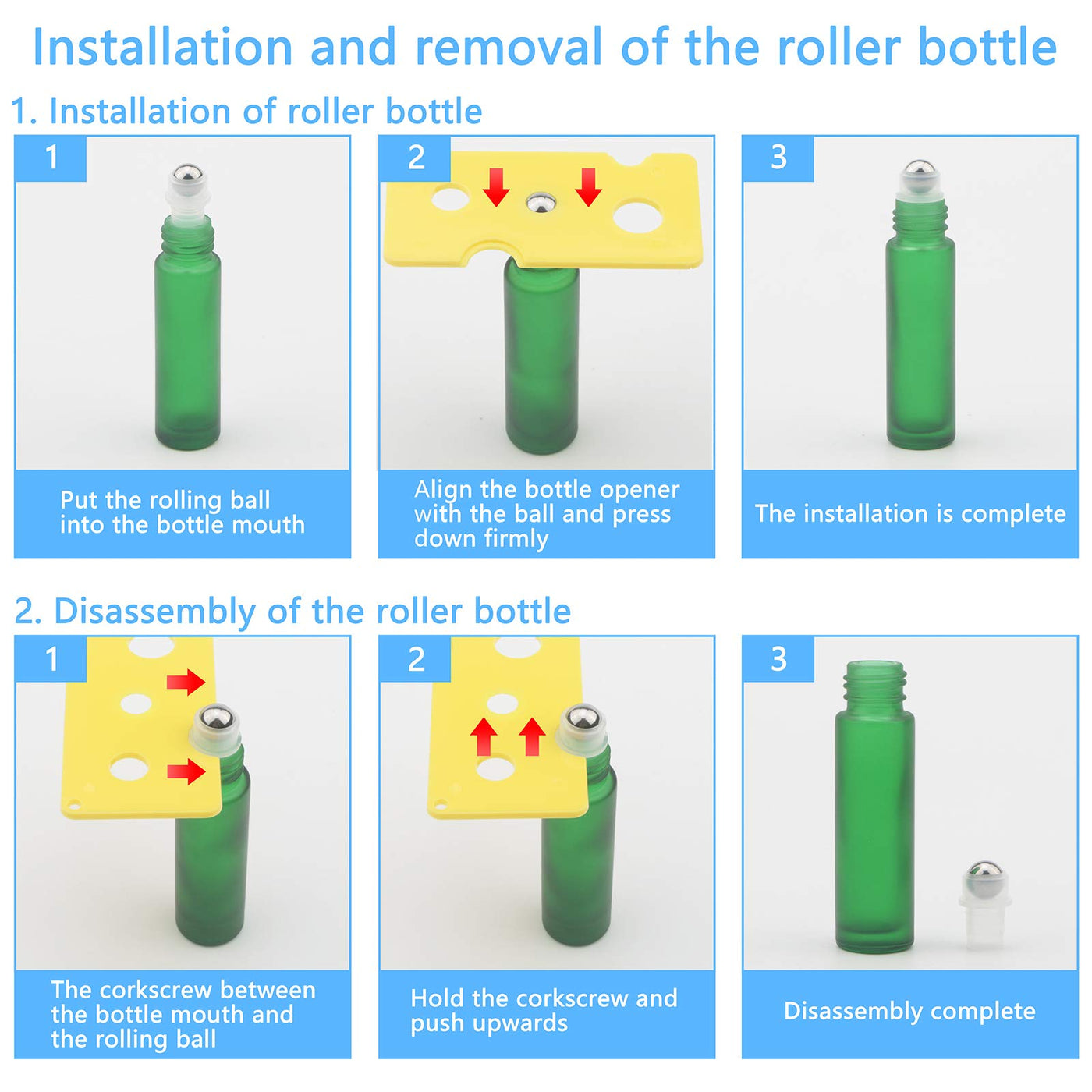 • Q: What tools are included for bottle installation? A: The package includes one bottle installation tool to assist with filling the roller bottles.