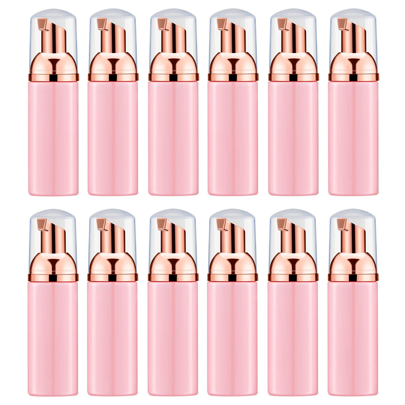 Lil Ray 2 Oz Empty Pink Foam Pump Bottle, Travel Foamer Soap Dispenser For Lash Shampoo, Hand Soap, Foaming Cleaner(Rose Gold Pu
