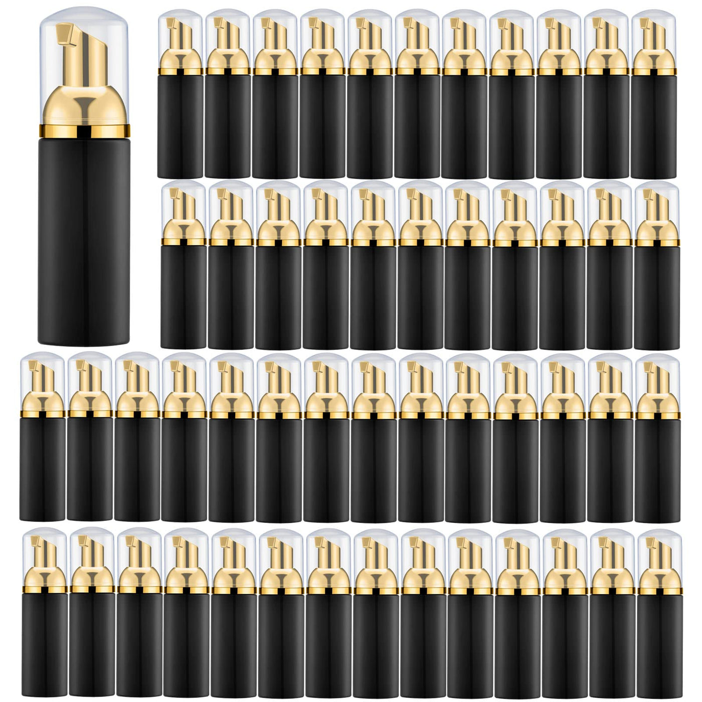 Lil Ray 50Pcs Black Foam Bottle With Gold Pump, Empty Travel Foaming Dispensers For Hand Soap,Lash Shampoo(2 Oz)