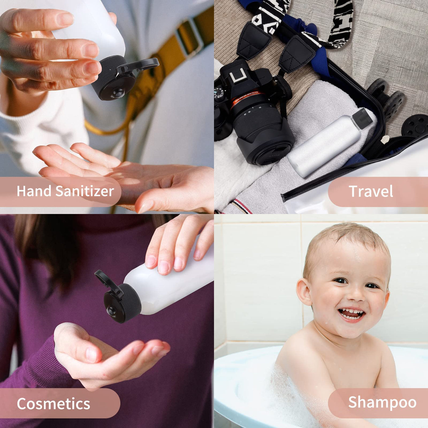 • Q: Are these bottles safe for cosmetic use? A: Yes, the bottles are made from food-grade plastic and are safe for storing cosmetics.