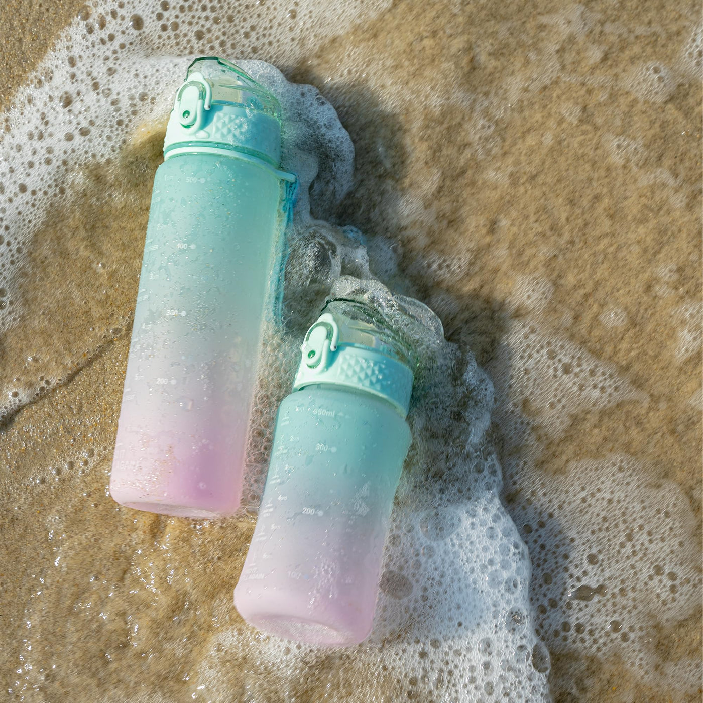 • Q: What features make this bottle suitable for kids? A: The bottle is designed with a one-click-open flip-top lid for easy access, a safety lock to prevent leaks and dust, and a lightweight design with a convenient carry handle.