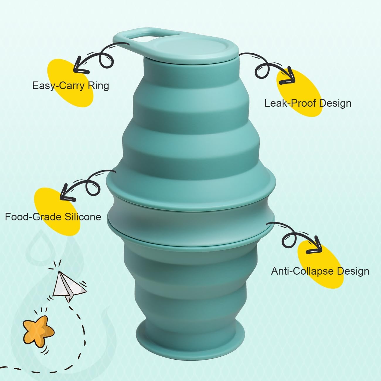 Opard Collapsible Water Bottles 17 Oz BPA Free Leak Proof Foldable Silicone Bottle with Anti-Collapse Ring for Travel Camping Hiking Running Sport