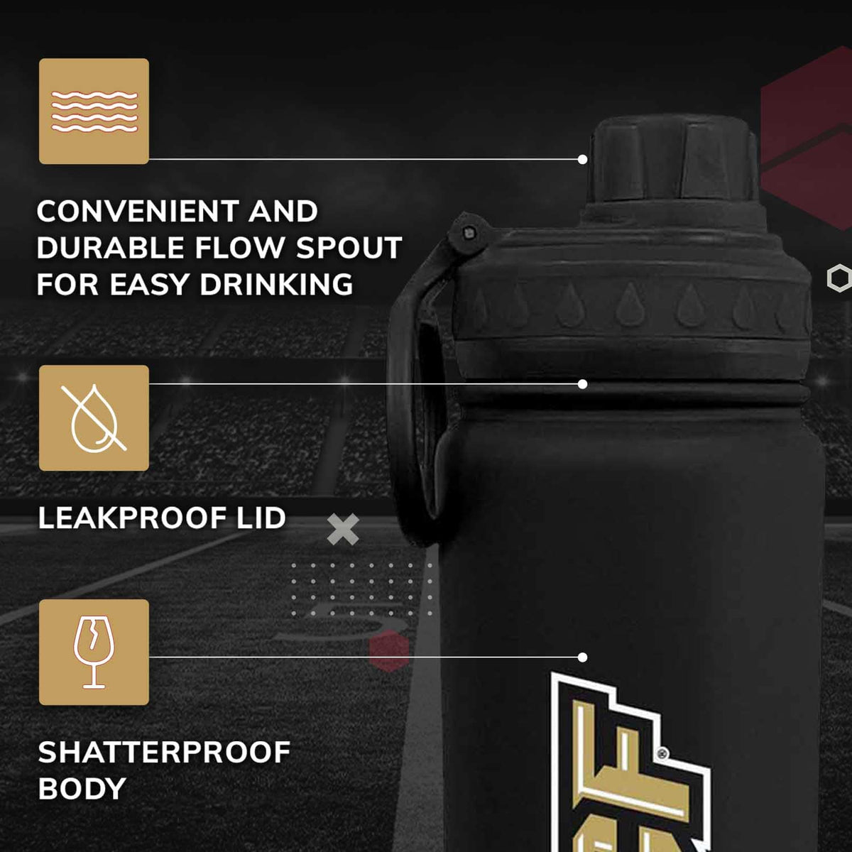 Stainless Steel Vacuum Sealed Sport College Water Bottle, Twist-On Cap, Built-In Handle For Hot Or Cold Drinks, 24 Oz (Central F