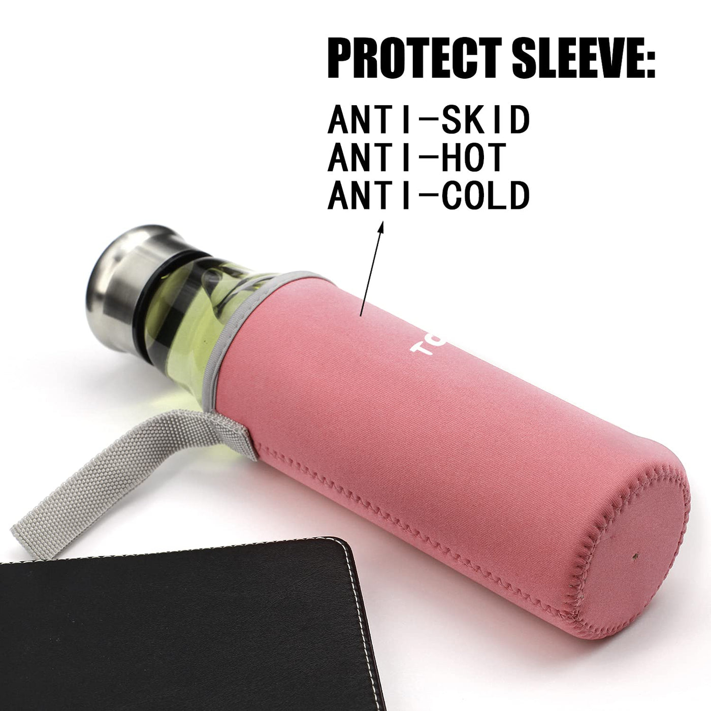Topoko 18.5 Ounce Top Level Quality Stylish Environmental Borosilicate Glass Water Bottle With Nylon Sleeve - Tea Infuser Bottle