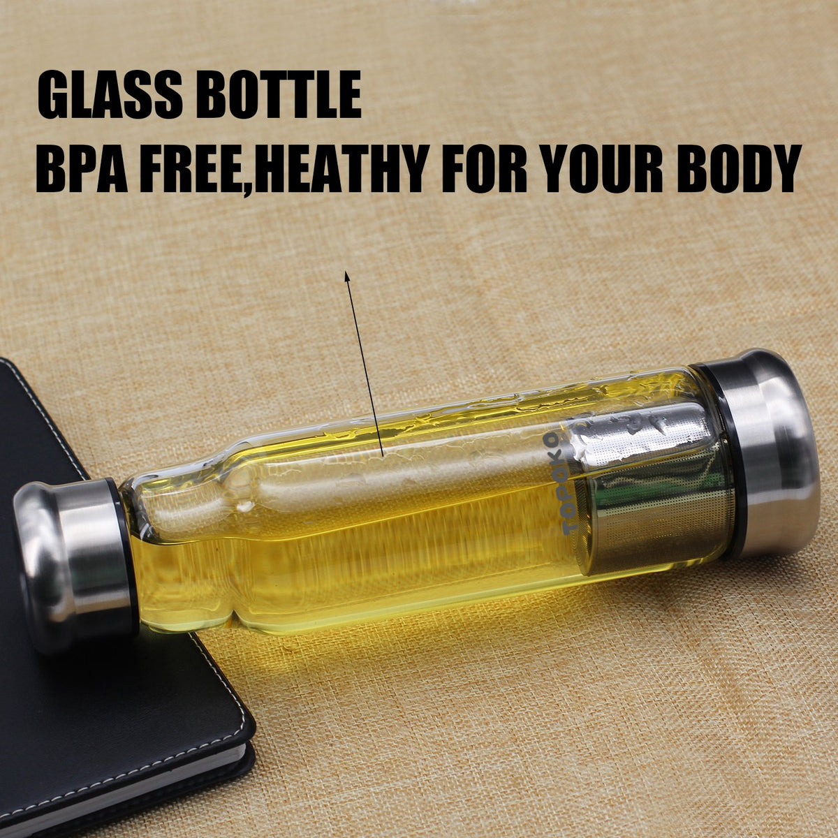 - Q: What is the capacity of the TOPOKO borosilicate glass water bottle? A: The TOPOKO borosilicate glass water bottle has a capacity of 18.5 ounces.