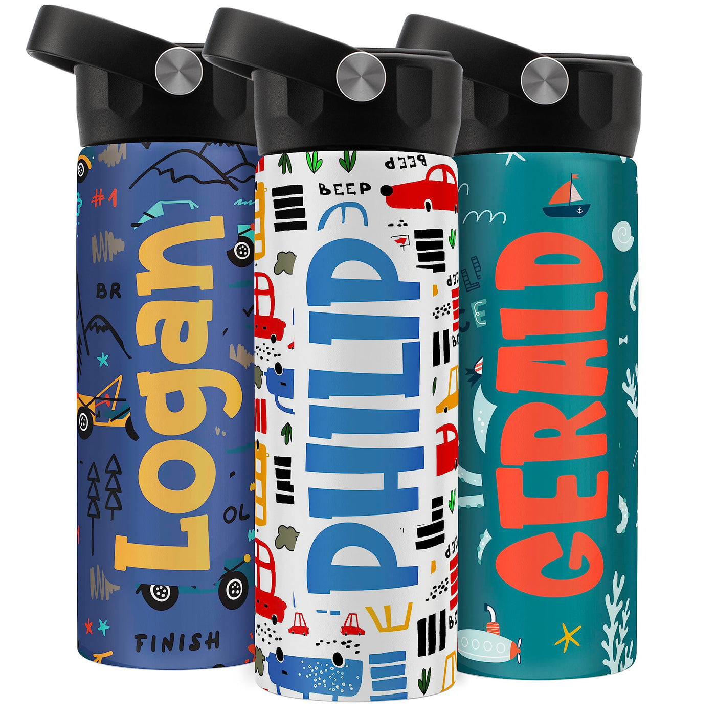 United Craft Supplies Personalized Kids Water Bottle W/Name - 14 Oz - 12 Designs - Bpa Free, Back To School Gifts, Custom Water