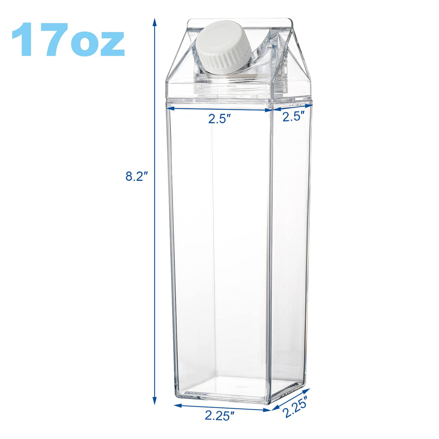 Yarlung 6 Pack Milk Carton Water Bottle, 17 Oz Clear Plastic Milk Box Portable Square Juice Bottle For Outdoor Sports Travel Cam