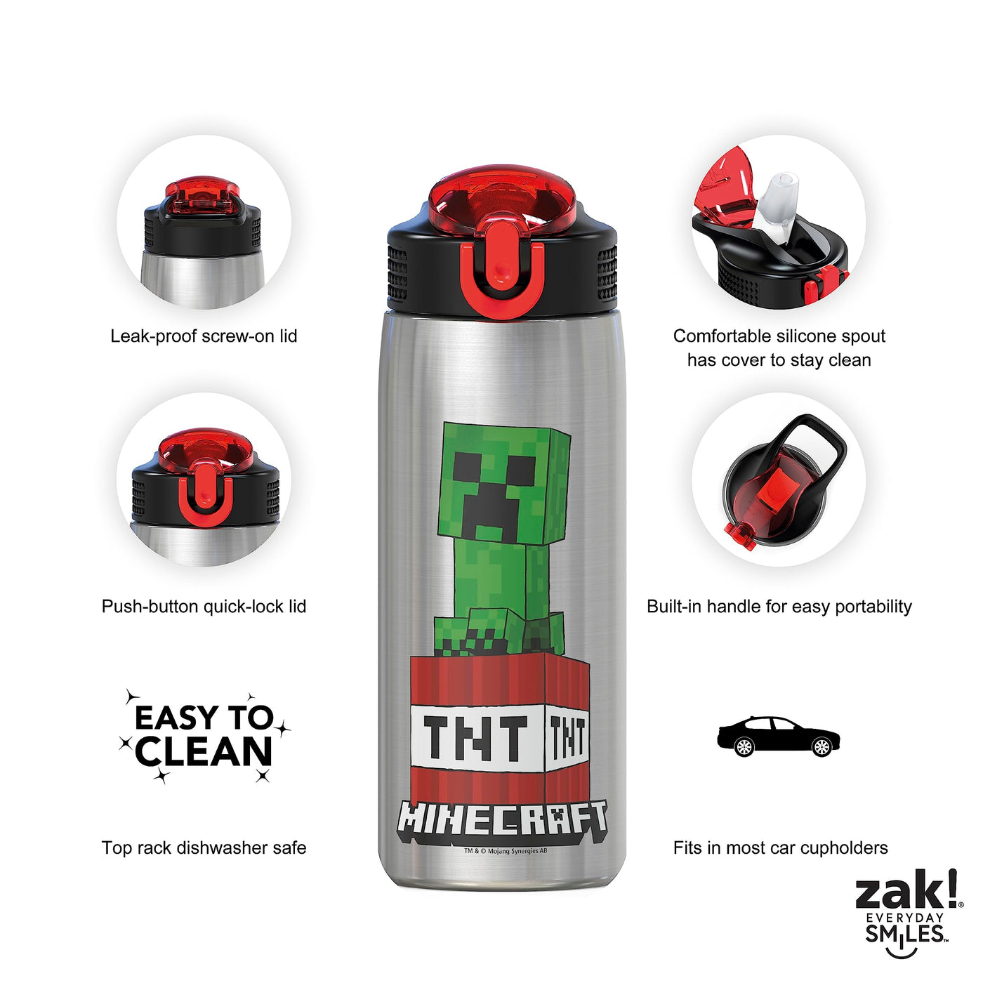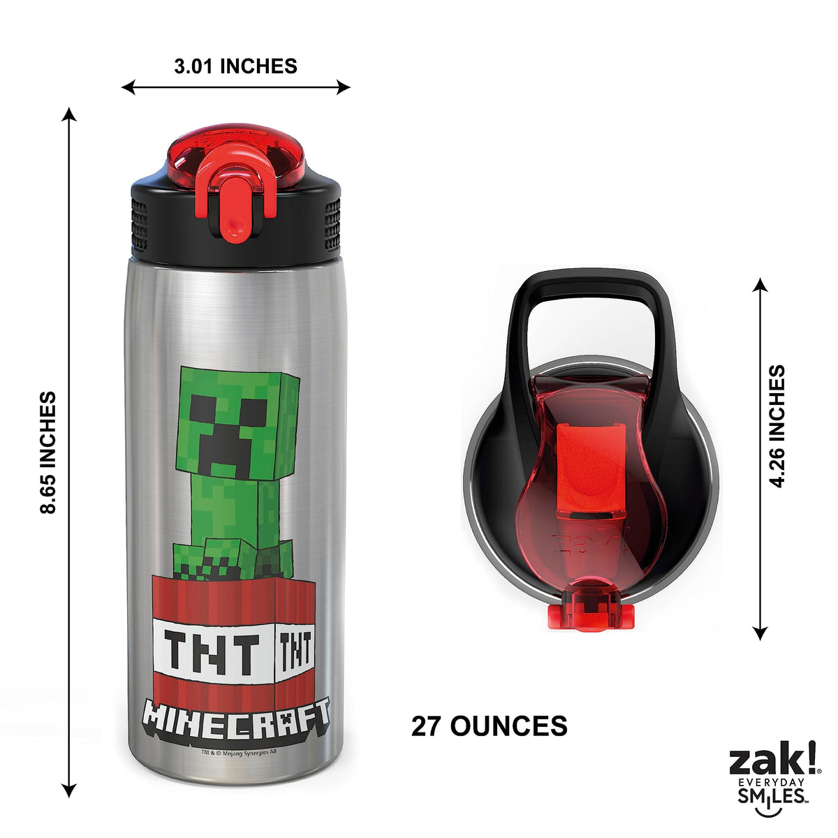 Zak Designs - Mici-V151 Zak Designs 27Oz Minecraft 18/8 Stainless Steel Water Bottle With Flip-Up Straw Spout And Locking Spout