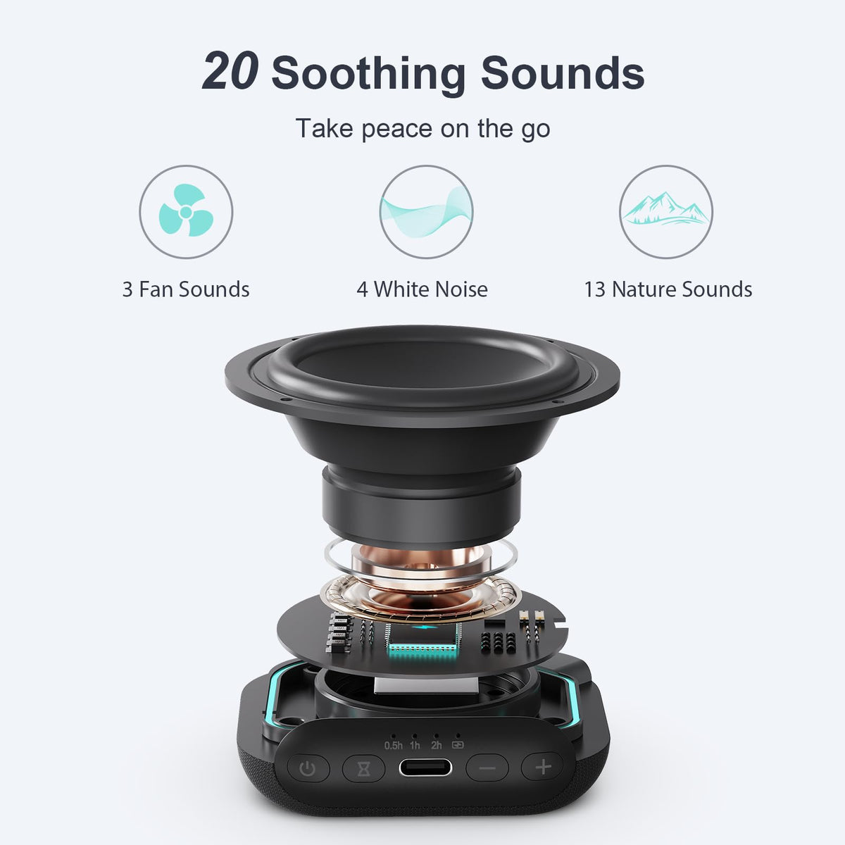 - Q: Can I set a timer for the sound machine? A: Yes, the sound machine offers three sleep timer settings: 0.5 hours, 1 hour, and 2 hours, allowing you to customize your sleep duration.