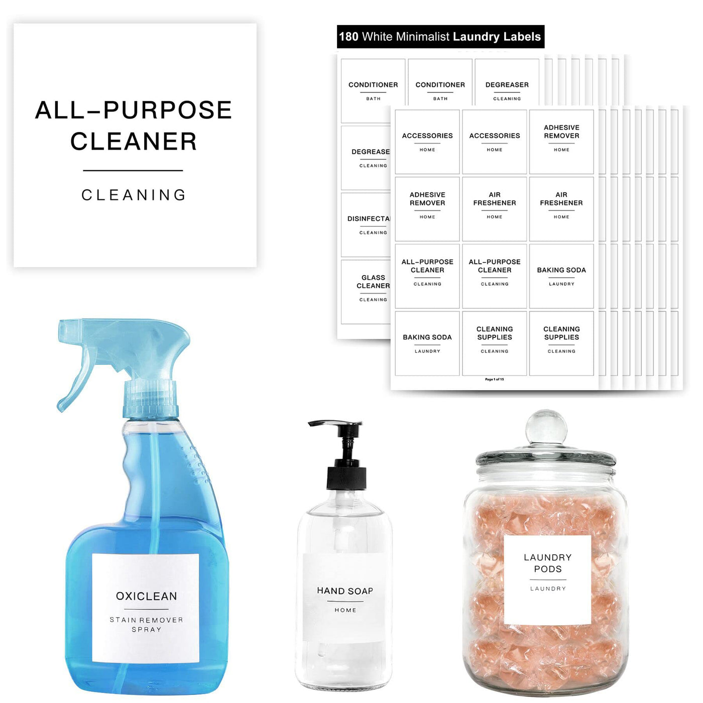 180 Minimalist Laundry Labels for Jars Laundry Stickers for Containers Cleaning for Laundry Room Spray Bottles and Household Organization Waterproof and Easy to Stick and Peel