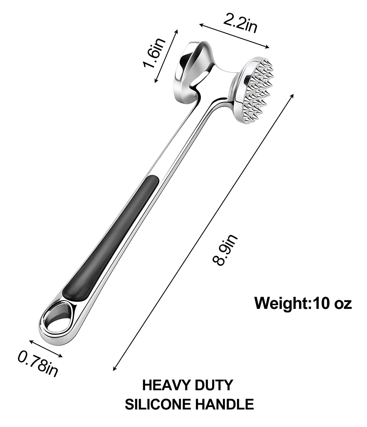 - Q: What is the weight of the Aliglow Meat Tenderizer? A: The hammer weighs 10 ounces, which provides a perfectly balanced feel for effective tenderizing.