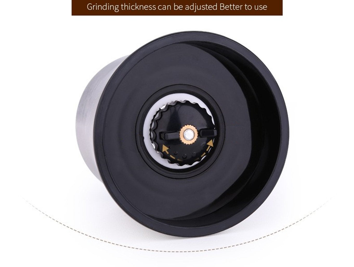 - Q: Can I adjust the grind size on this grinder? A: Yes, you can easily select the grinder setting from fine to coarse by rotating the tab.