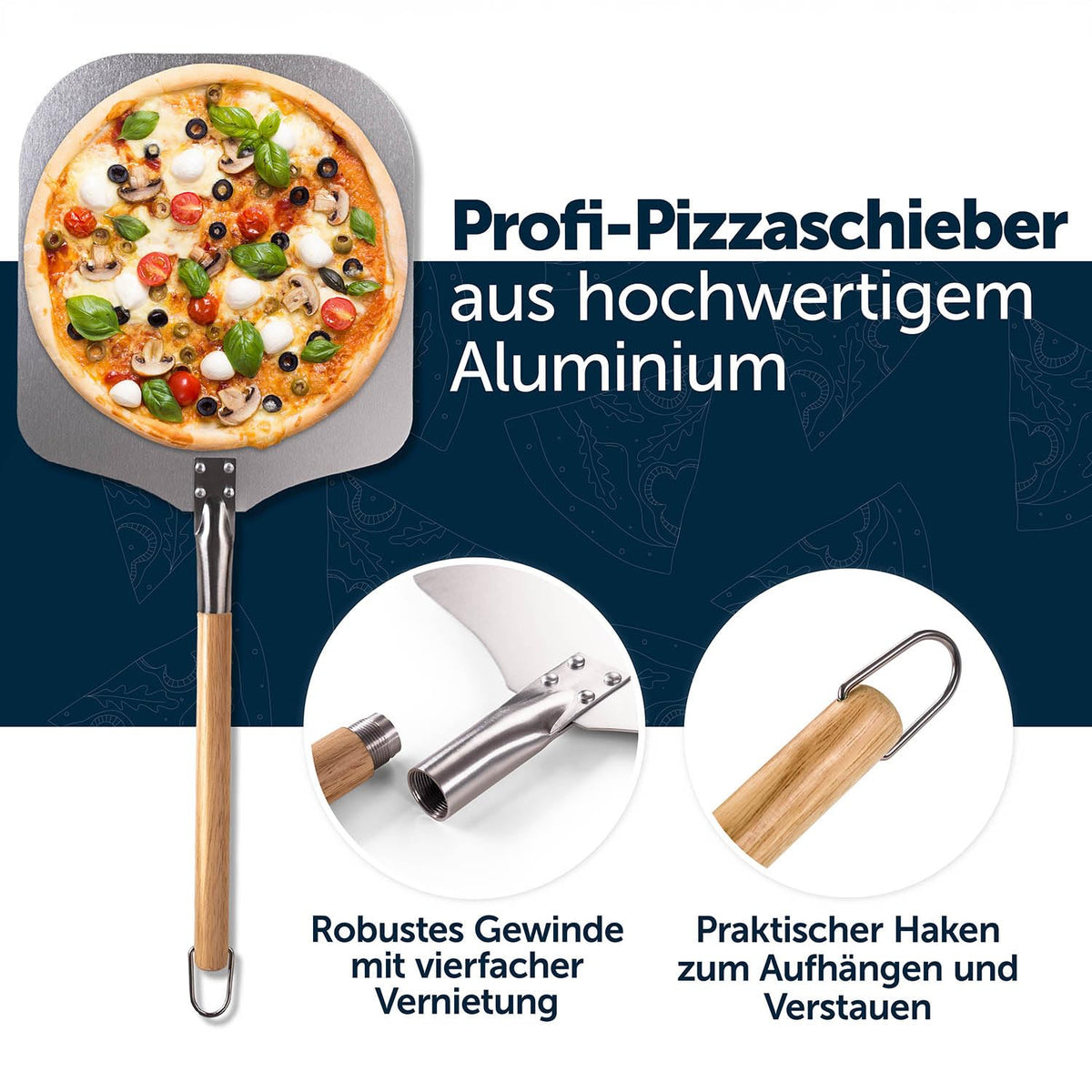 Blumtal Pizza Peel - Aluminium Paddle With Wooden Handle - Cuts - Pizza Peel Oven With A Surface Of 12'' X 12'' And Wooden Handl