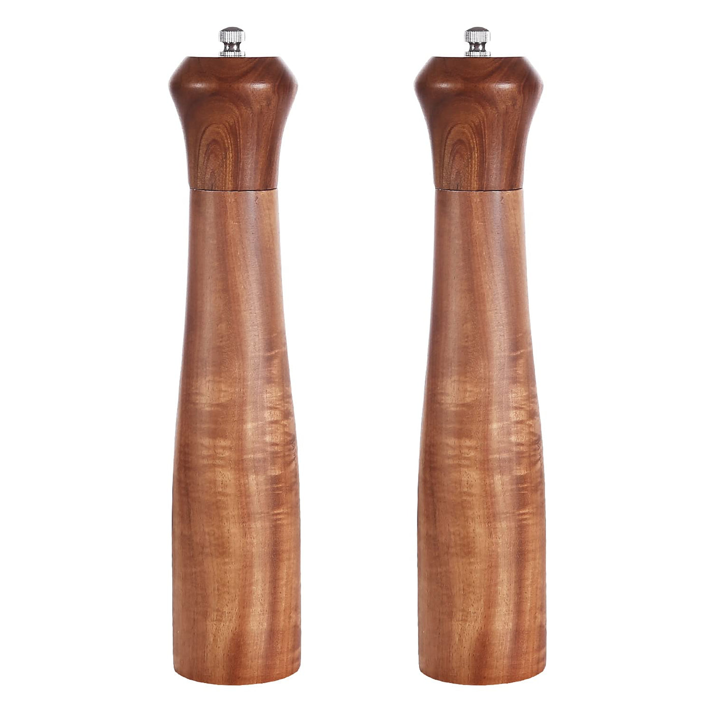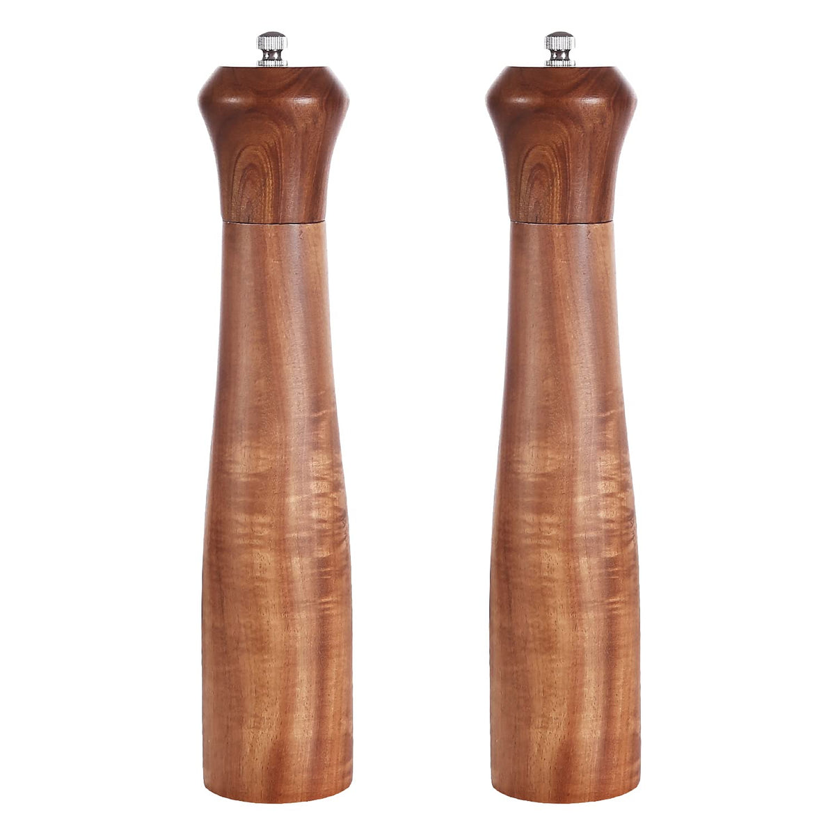 KKC HOME ACCENTS Wooden Salt and Pepper Shakers Wooden Salt and Pepper Grinder Mill Set Refillable Acacia Wood 10 Inch