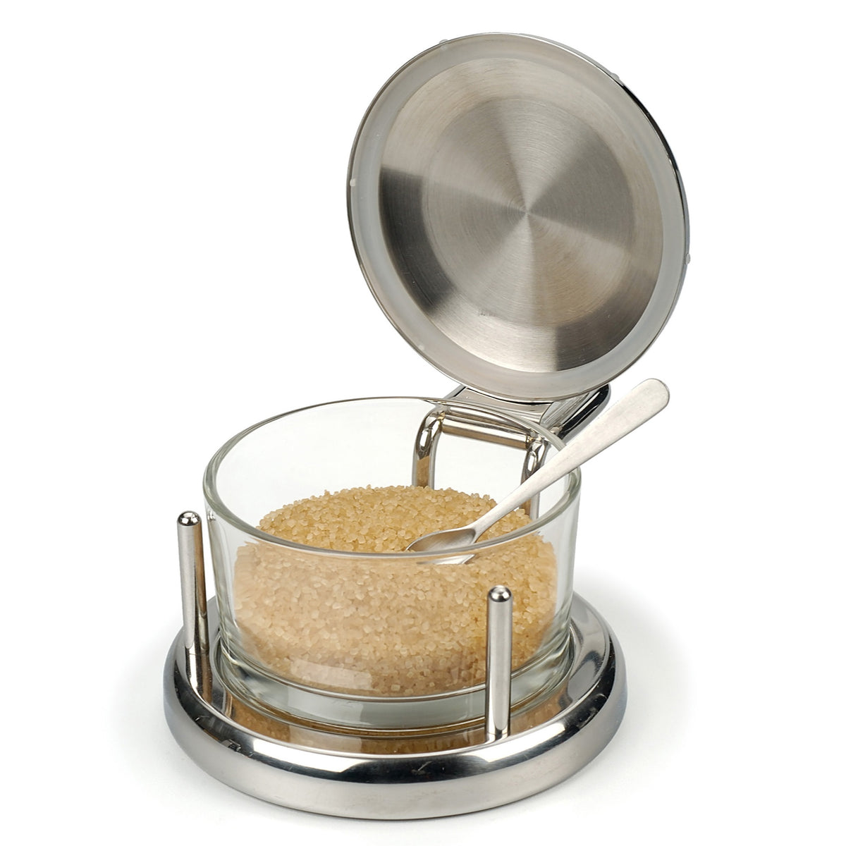 • Q: Does the lid help keep contents dry? A: Yes, the stainless lid includes a silicone gasket that helps keep salt, sugar, or herb blends clean and dry.