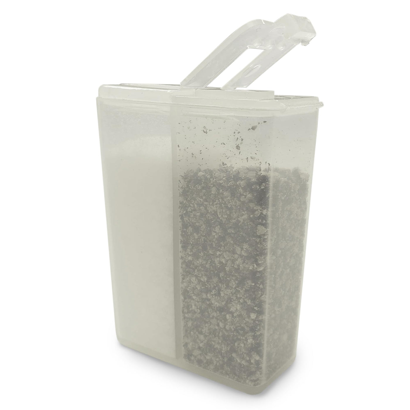 - Q: How do the salt and pepper shakers dispense their contents? A: These shakers feature tops that allow for controlled dispensing, preventing spills and clumping, which is common with traditional salt and pepper packets.