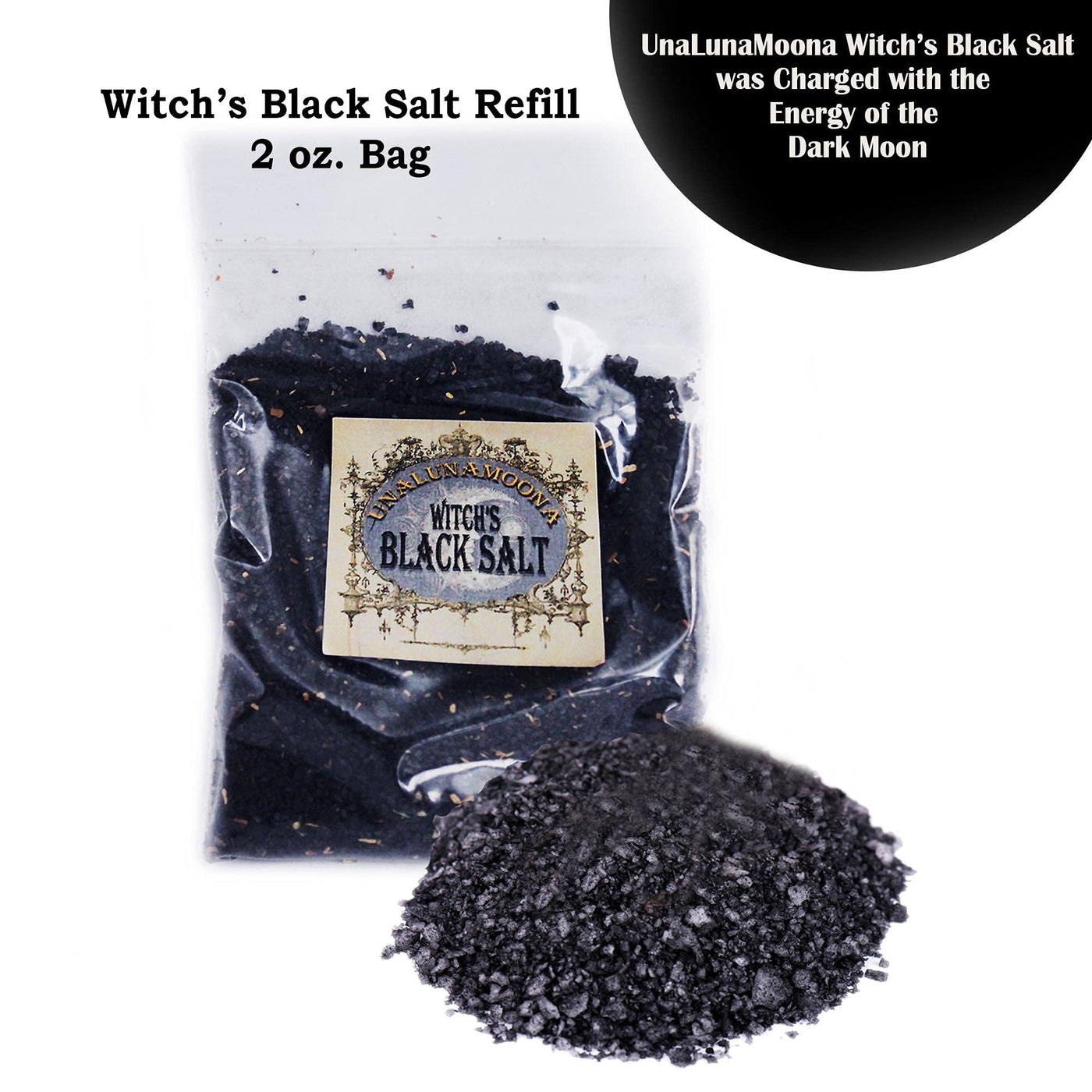 - Q: What is UnaLunaMoona Black Salt used for? A: UnaLunaMoona Black Salt is used in Wiccan spells for protection against negativity, evil, and hexes. It is designed to provide psychic protection during witchcraft rituals.