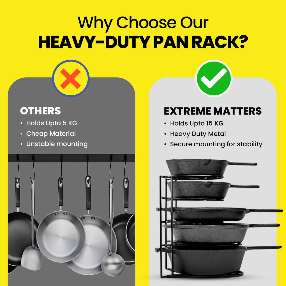 WonderStand Heavy Duty Pot Pan Rack Organizer (5-Tier), Pan Rack Holder and Organizer Rack for Home/Kitchen