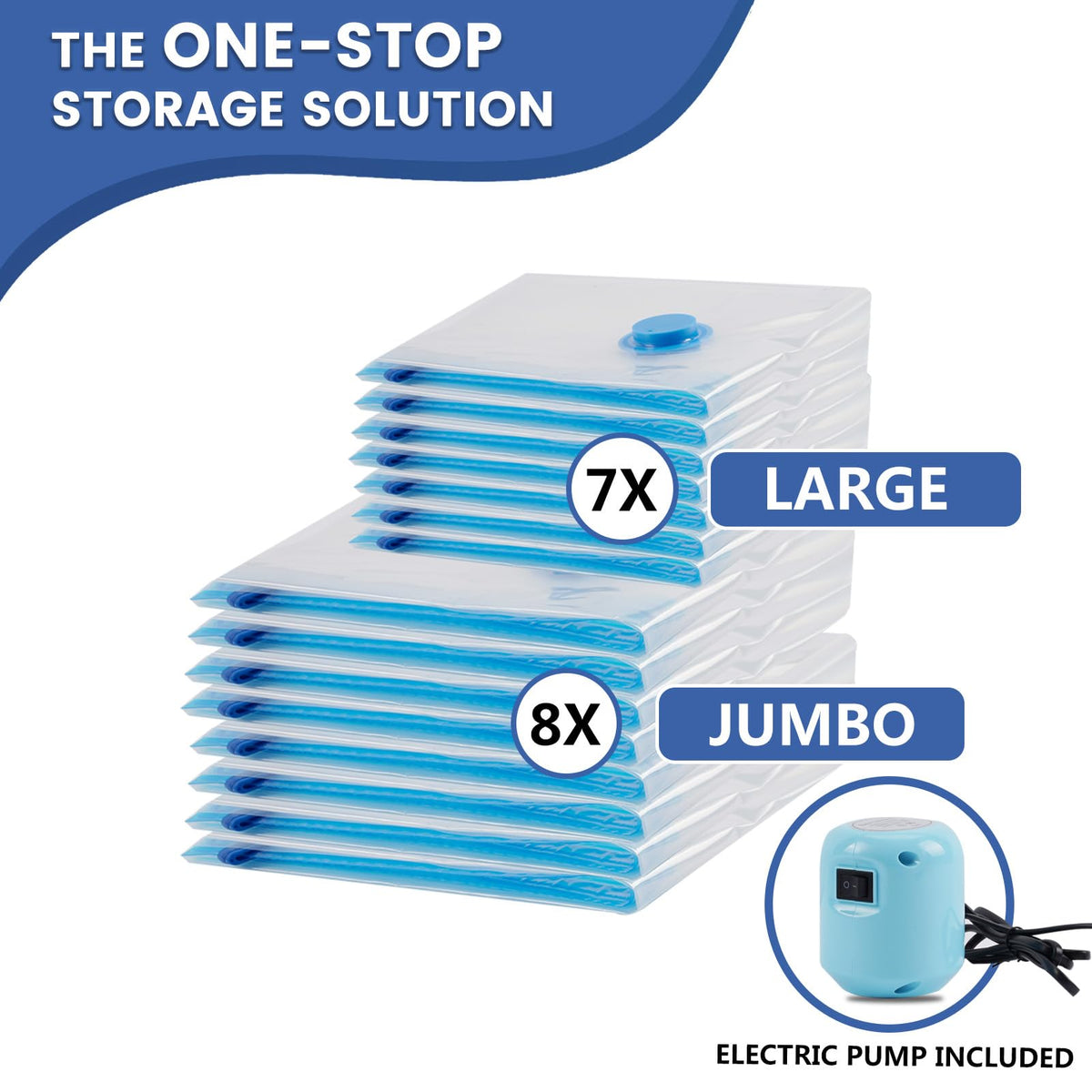 15 Pack Vacuum Storage Bags With Electric Pump, Space Saver Bags (8 Jumbo/7 Large) Compression For Comforters And Blankets, Seal